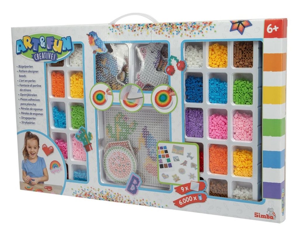 Dárková sada zažehlovacích korálků. Obsahuje 6 000 ks různých korálků, 8 malých a 1 velkou šablonu.