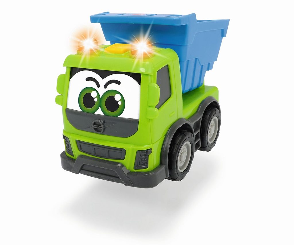Veselé pracovní autíčko pro nejmenší, na volnoběh. Namalovaná očíčka, zvukový a světelný efekt. 3 druhy - sklápěčka, míchačka, nákladní auto. Délka 13 cm.