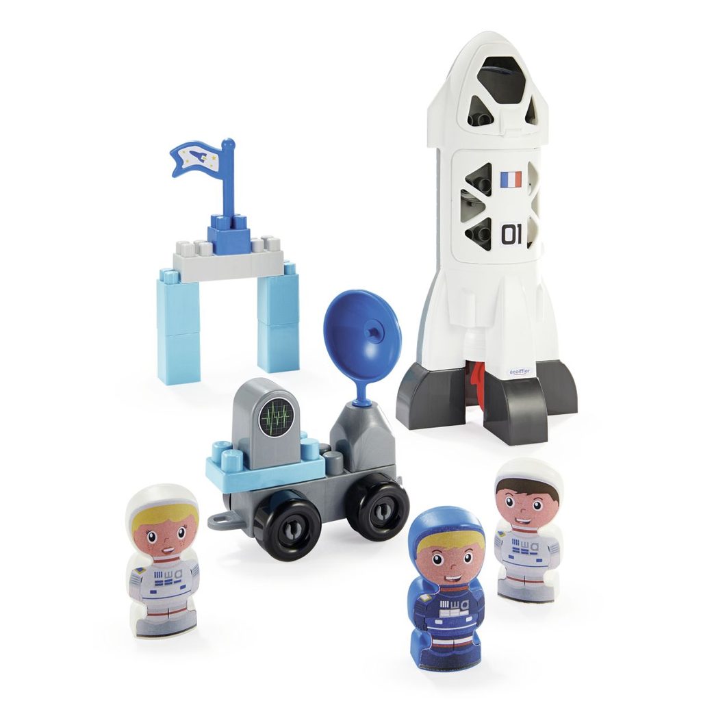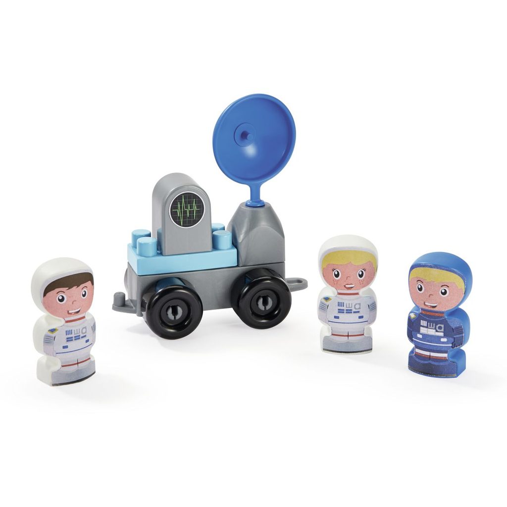 Raketoplán, vesmírné vozítko a 3 astronauti. Rozměry: 13,5 x 13,5 x 28 cm. Věk: 18M+