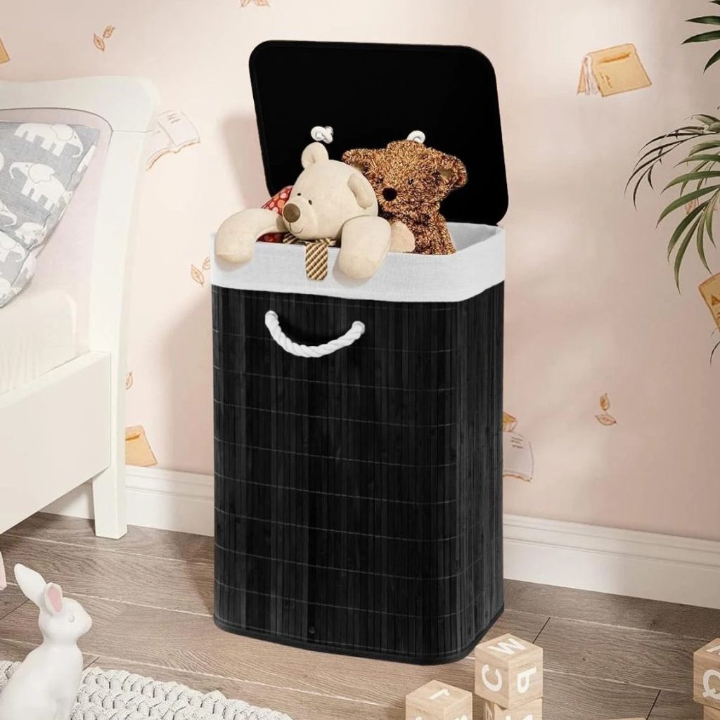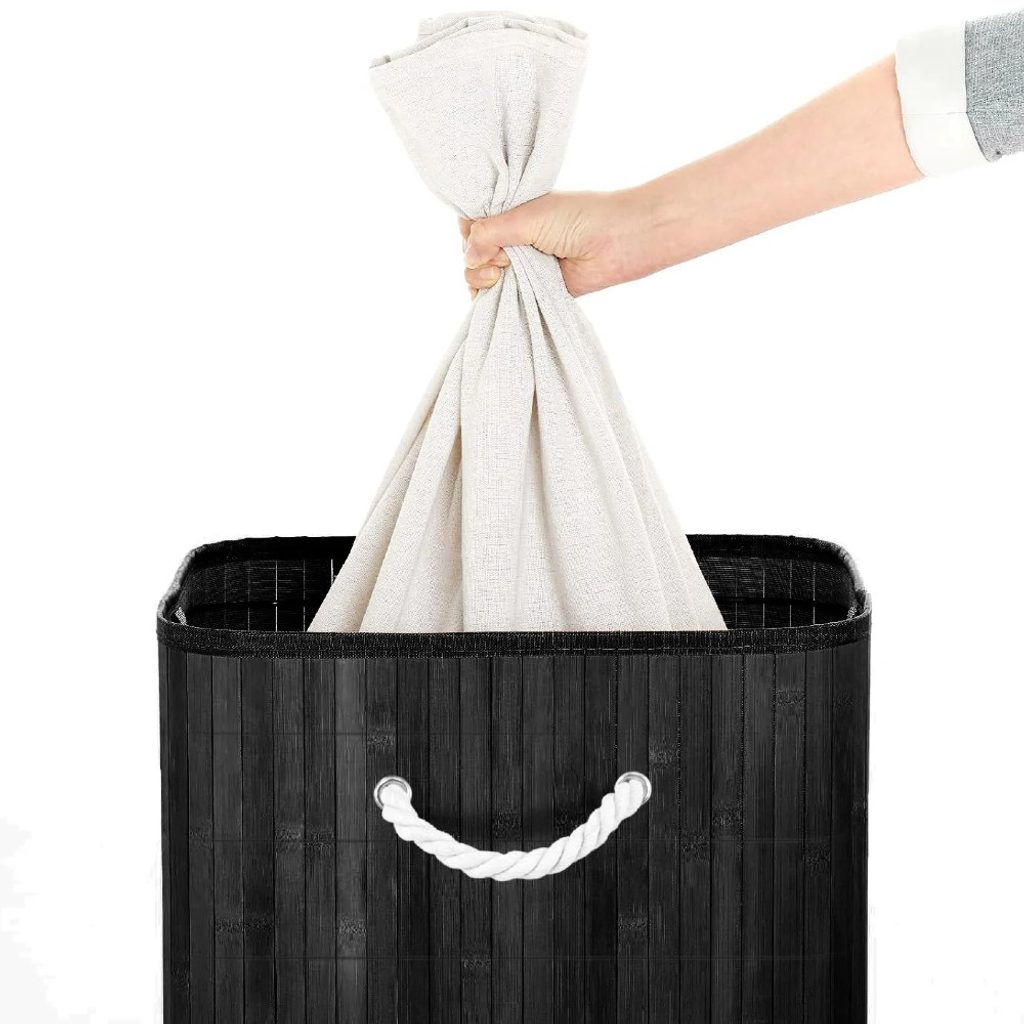 Tento koš na prádlo je vyroben z bambusu a pevné látky, takže vám zajistí dlouhou životnost. Kovové výztuhy dodávají stabilitu a skládací konstrukce umožňuje pohodlné skladování, když se nepoužívá.