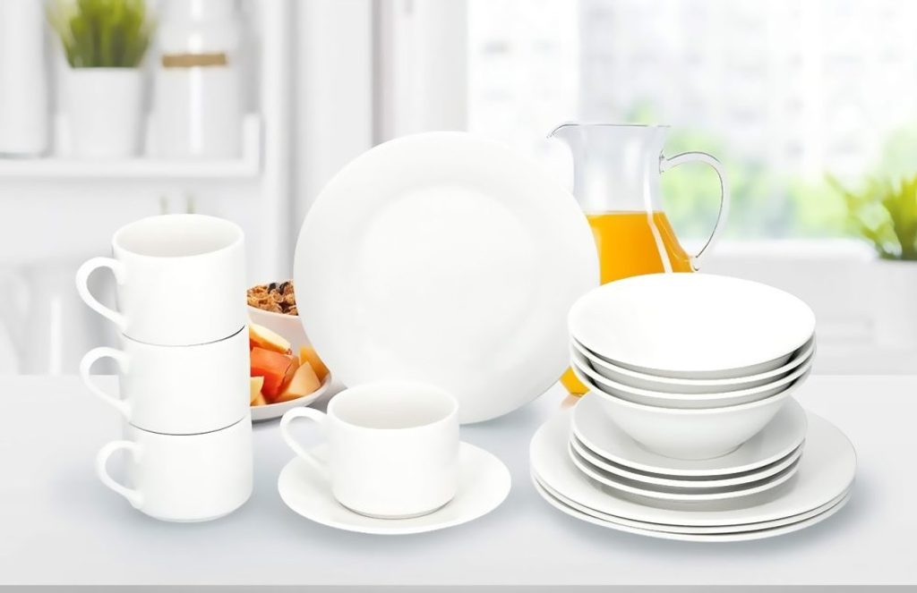 ALPINA Snídaňová sada pro 4 osoby keramická ED-216033 Tato 16dílná sada se skládá ze 4 šálků (170 ml), 4 podšálků (14,5 cm), 4 snídaňových talířů (20,5 cm) a 4 misek (15,5 cm). Sada je vyrobena z vysoce kvalitní keramiky a je ideální pro každodenní použití. tuto sadu můžete jednoduše vložit do myčky na nádobí a lze ji vložit i do mikrovlnné trouby.Ideální také jako dárek.