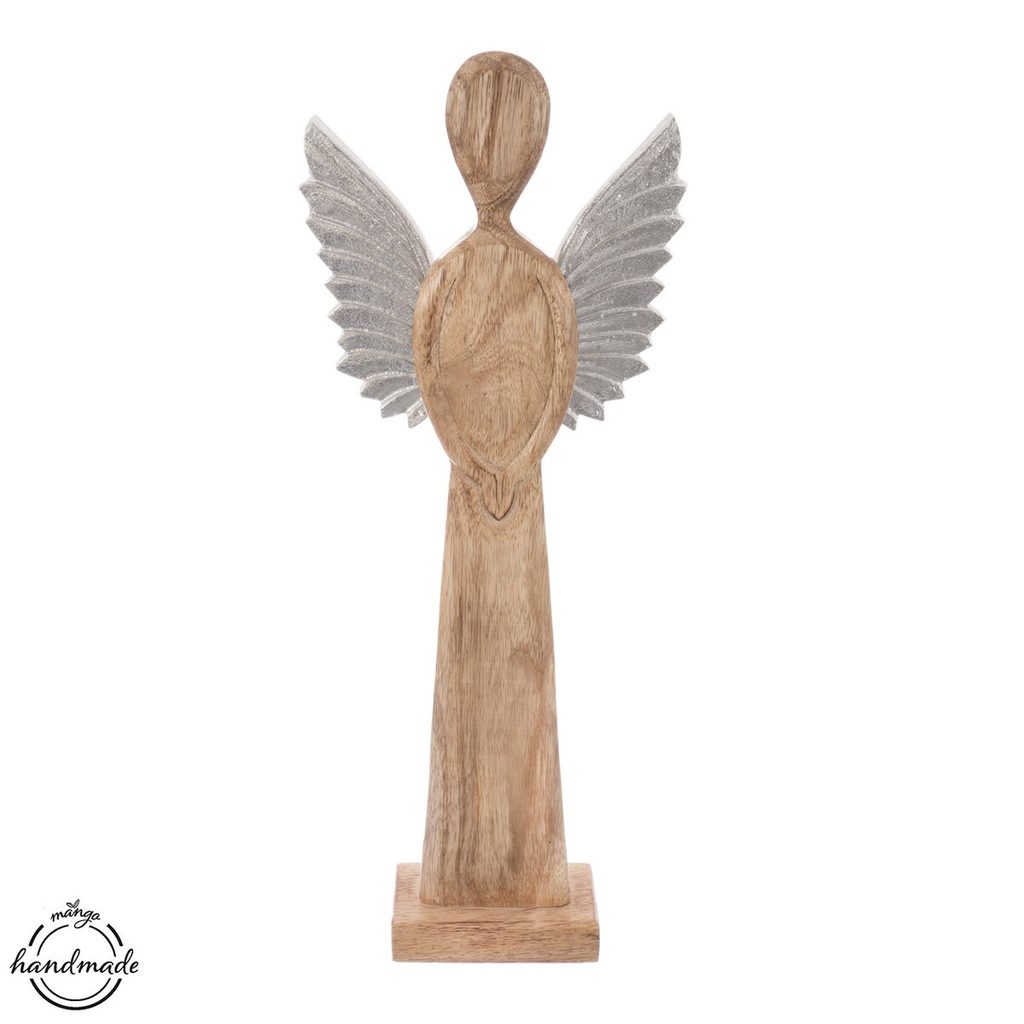 Dekorace ANDĚL s kovovými křídly ozdobí vaši domácnost nejen v období Vánoc, využít ji můžete po celý rok. Má krásnou texturu mangového dřeva. Vhodná také jako dárek. Materiál: dekorativní mangové dřevo, kov. Rozměry: š. 17 cm, v. 42,5 cm.