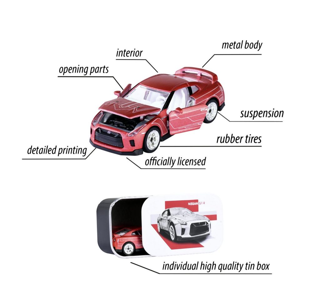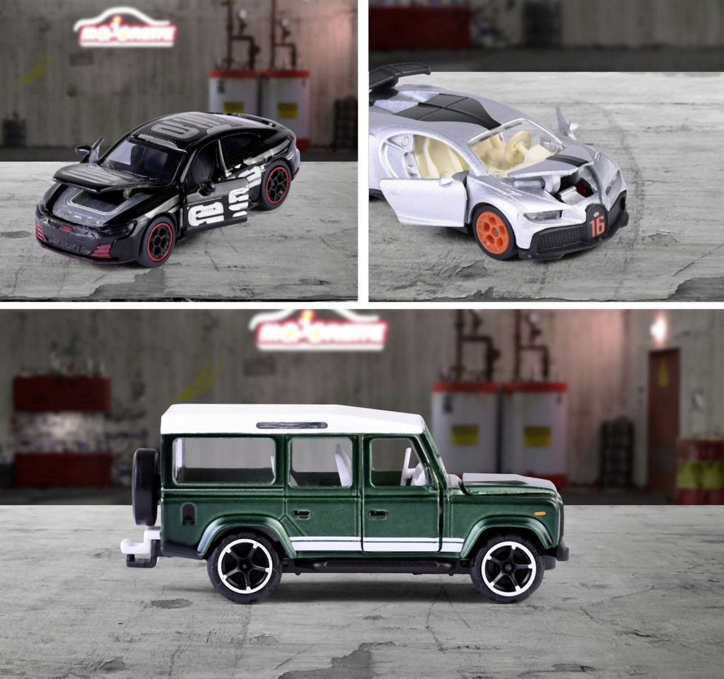 Kovové autíčko z kolekce Deluxe Cars na volnoběh. S více otevíratelnými částmi (dveře/kapota).V kolekci je 6 druhů autíček: Audi RS e-tron GT, Bugatti Chiron Pur Sport stříbrné, Bugatti Chiron Pur Sport bronzové ,Nissan GT-R Porsche Taycan Turbo S, Land Rover Defender 110. Sběratelská plechová krabička je součástí. Délka autíčka 7,5 cm. V měřítku 1:64.