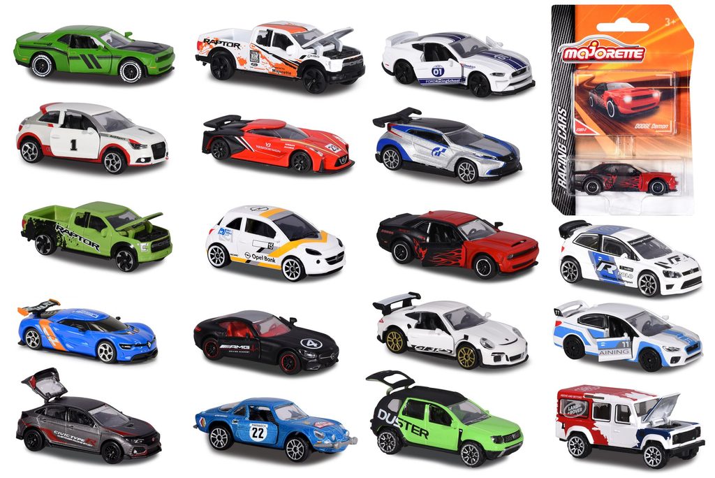 Kovové autíčko z řady Racing. Volnoběh, otevírací části. Měřítko 1:64, délka cca 7,5 cm. Součástí i seznam autíček vydaných v této edici. 18 druhů.