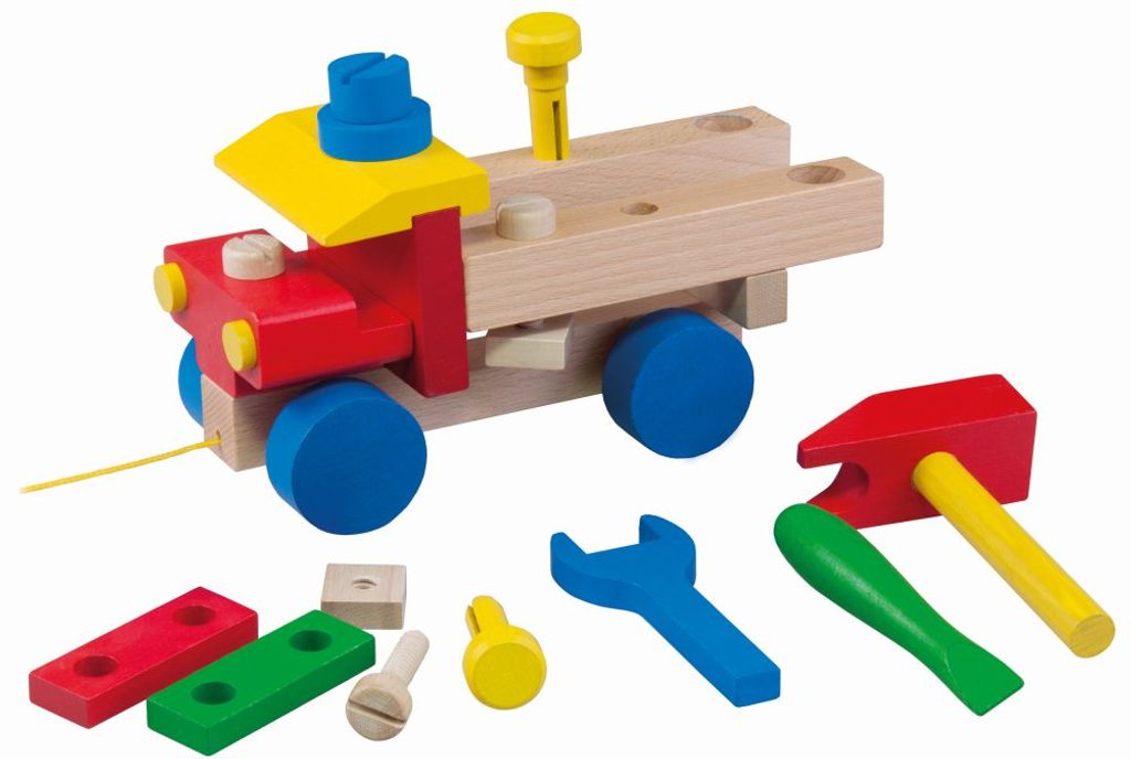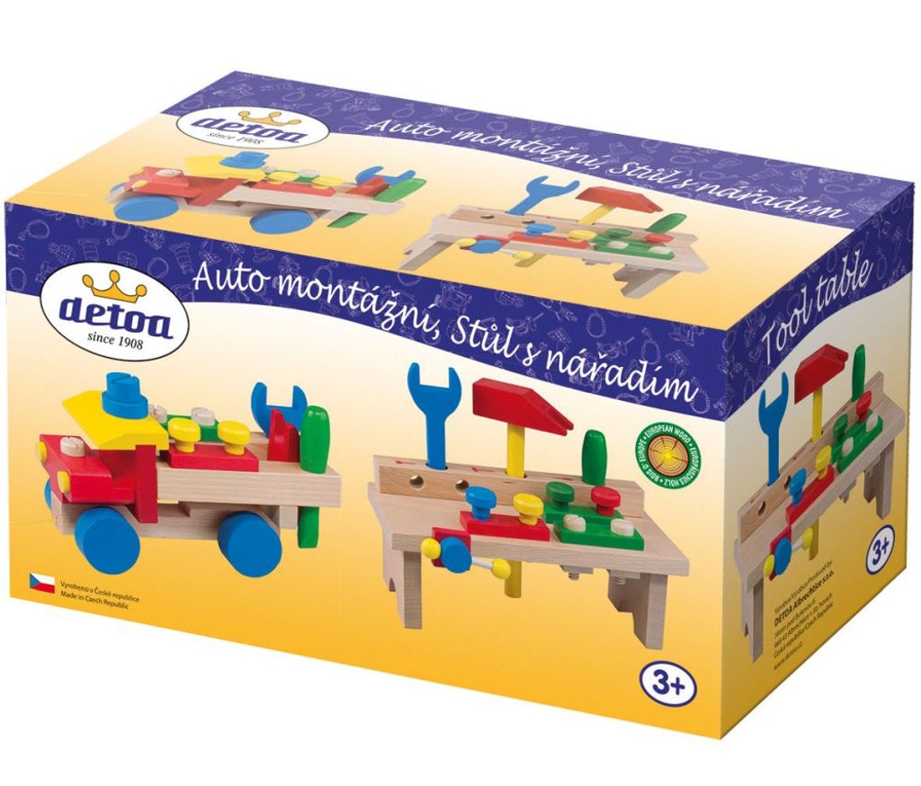 Montážní auto je hračkou, která podporuje rozvoj dětské motoriky a myšlení. Je složené z oddělitelných částí, které umožňují přiloženým dřevěným nářadím auto rozebrat a zase složit, zároveň lze použít jako tahačka. Baleno v papírové krabičce. Nevhodné pro děti do 3 let. Obsahuje malé části. Výrobek je zdravotně nezávadný.