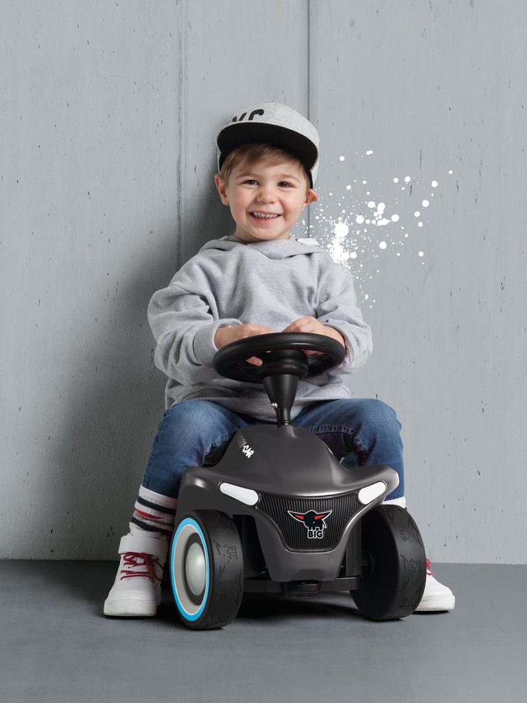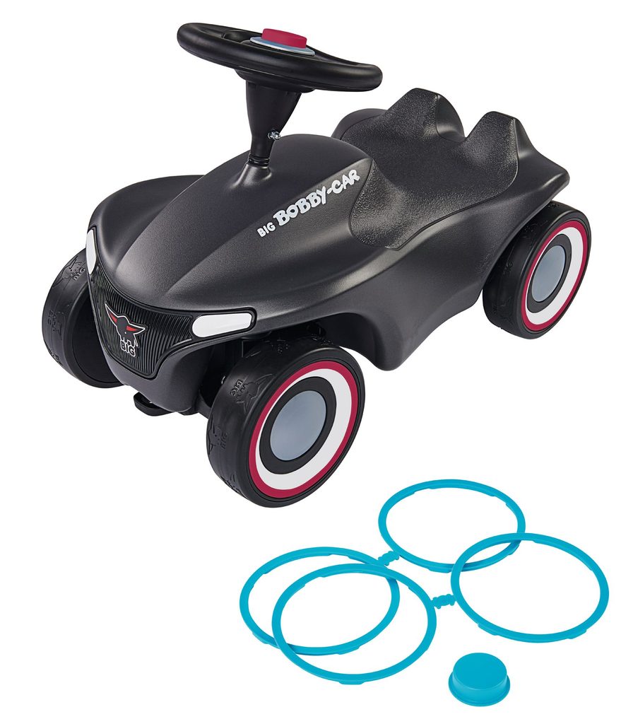 Auto odstrkovadlo Big Bobby Car Neo v novém moderním designu, v antracitovém provedení. Možnost volby designu umožňuje výměna ráfků za růžové nebo tyrkysové, které jsou součástí balení. S velmi kvalitní tištěnou mřížkou a tištěnými světly vpředu a vzadu. Klason na volantu, ergonomické protiskluzové sedadlo s bezpečnostním prostorem pro kolena a vysoce kvalitní tichá kolečka s profilem BIG-buffalo. Očko na přichycení např. provázku nebo vodící tyče vpředu i vzadu. Max. nosnost 50 kg. Rozměry: 57 x 39 x 30 cm.
