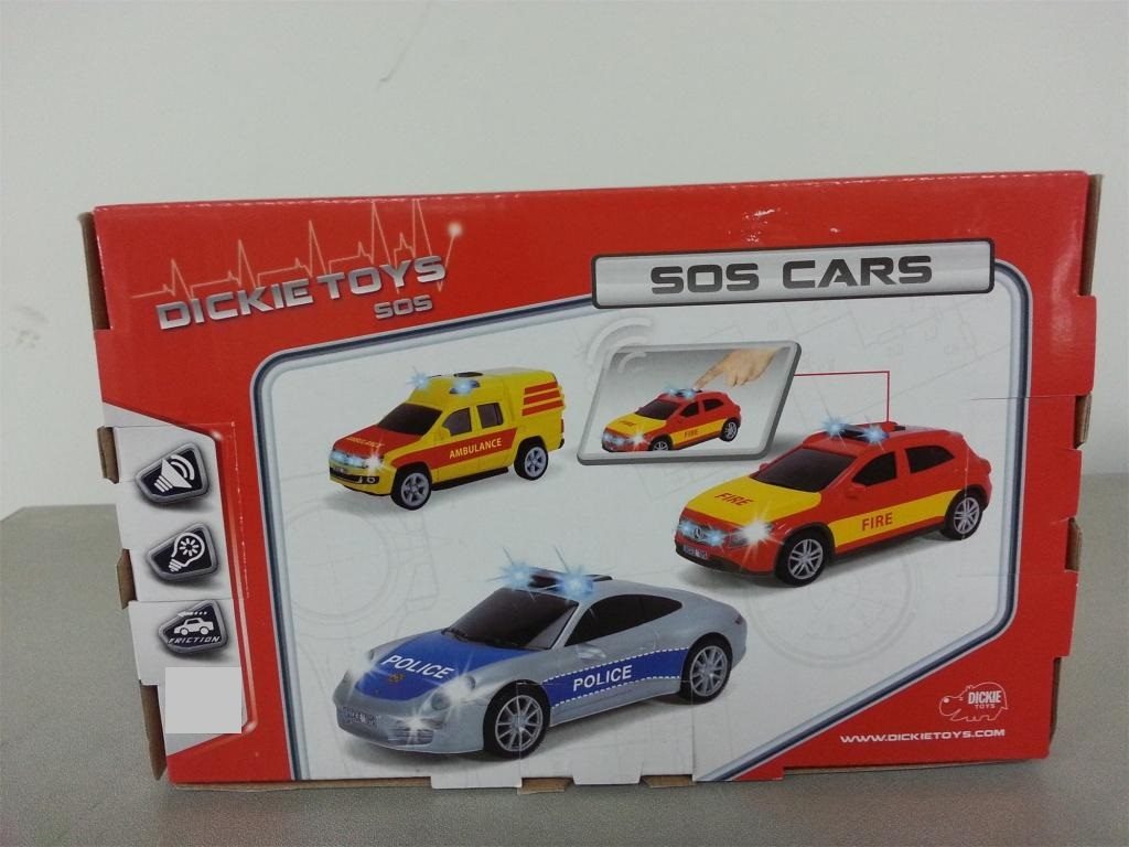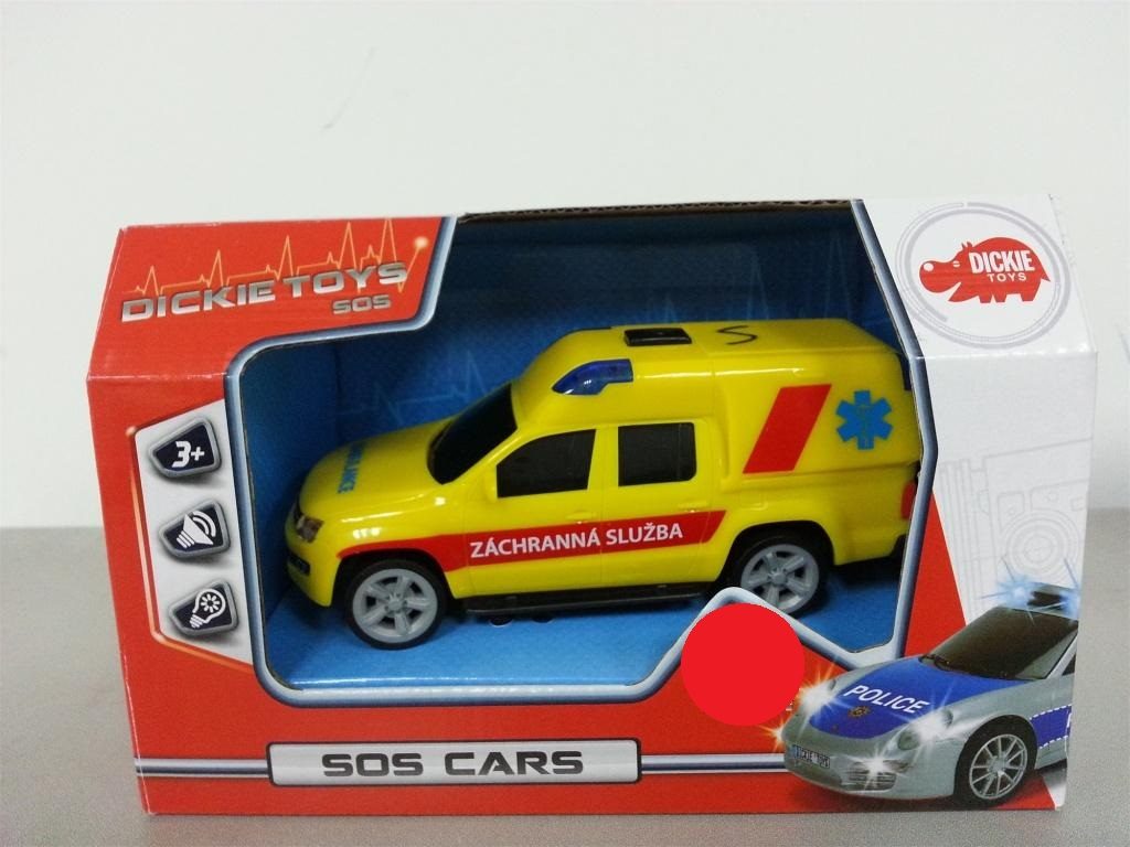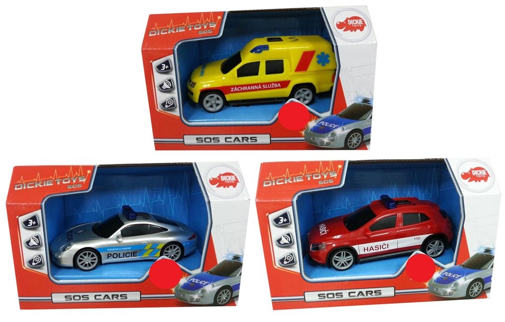 Auto složek záchranných sborů na setrvačník se světelným a zvukovým efektem. Měřítko 1:36, délka 15 cm. Česká verze. 3 druhy: ambulance, hasičské nebo policejní auto.