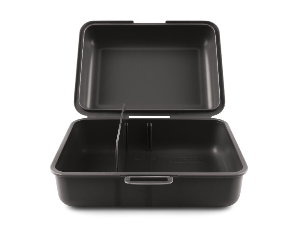 • Plastový box na svačinu v černé barvě.