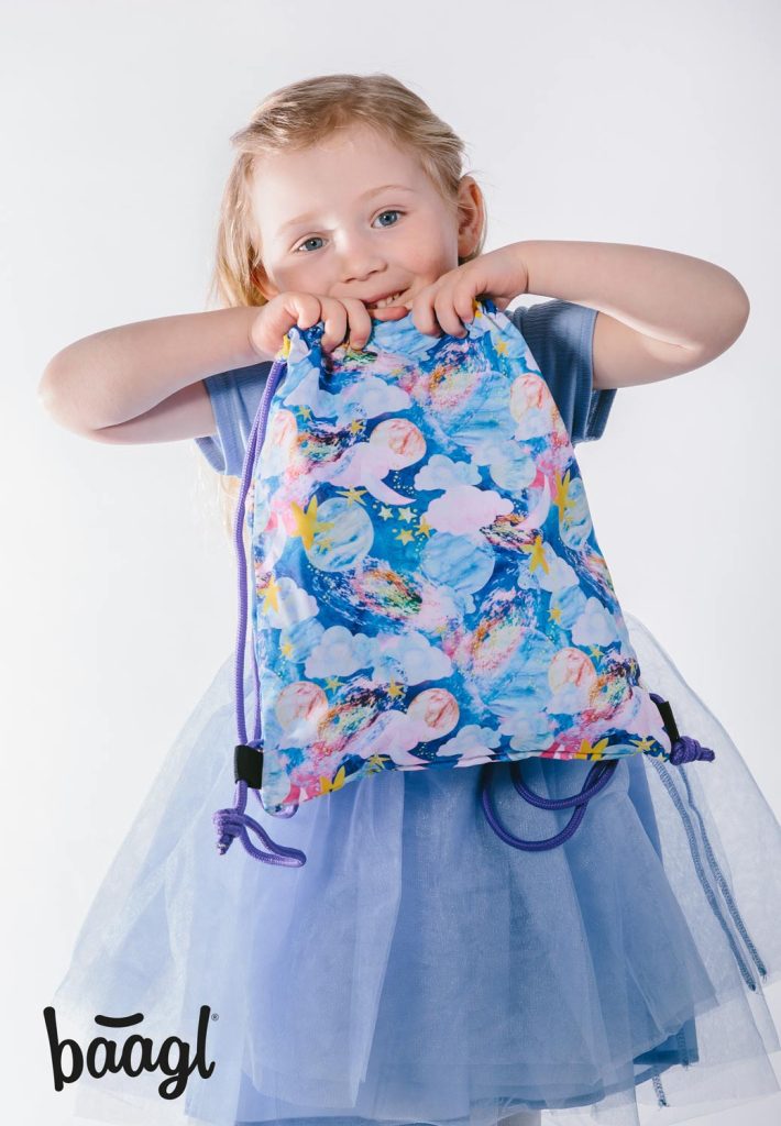 Pestrobarevná noční obloha je motivem předškolního sáčku na obuv, vhodného pro holky i kluky.