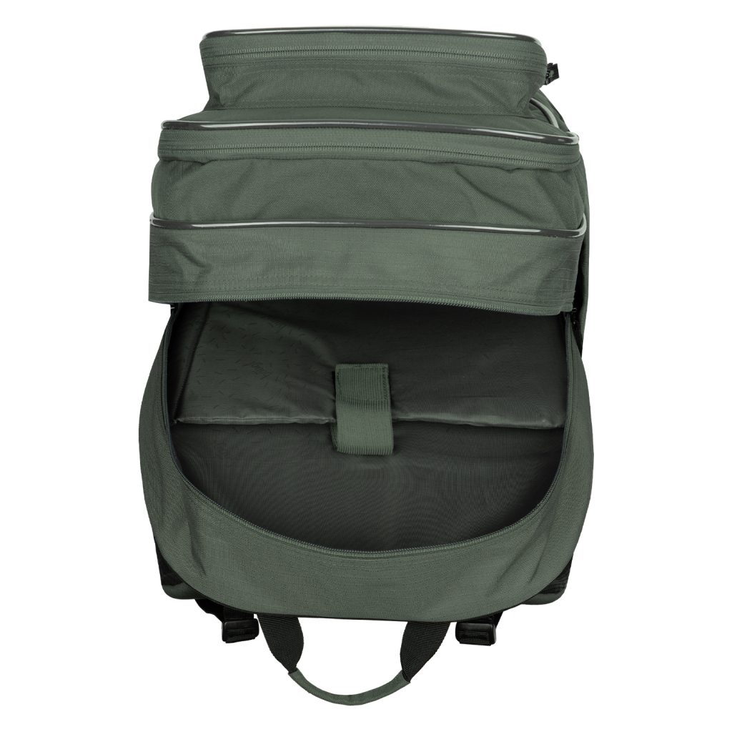 • Tři samostatně uzavíratelné komory s vnitřním organizérem a kapsou na 15palcový notebook či tablet. Tento vnitřní organizér umožňuje rovnoměrné rozložení hmotnosti.