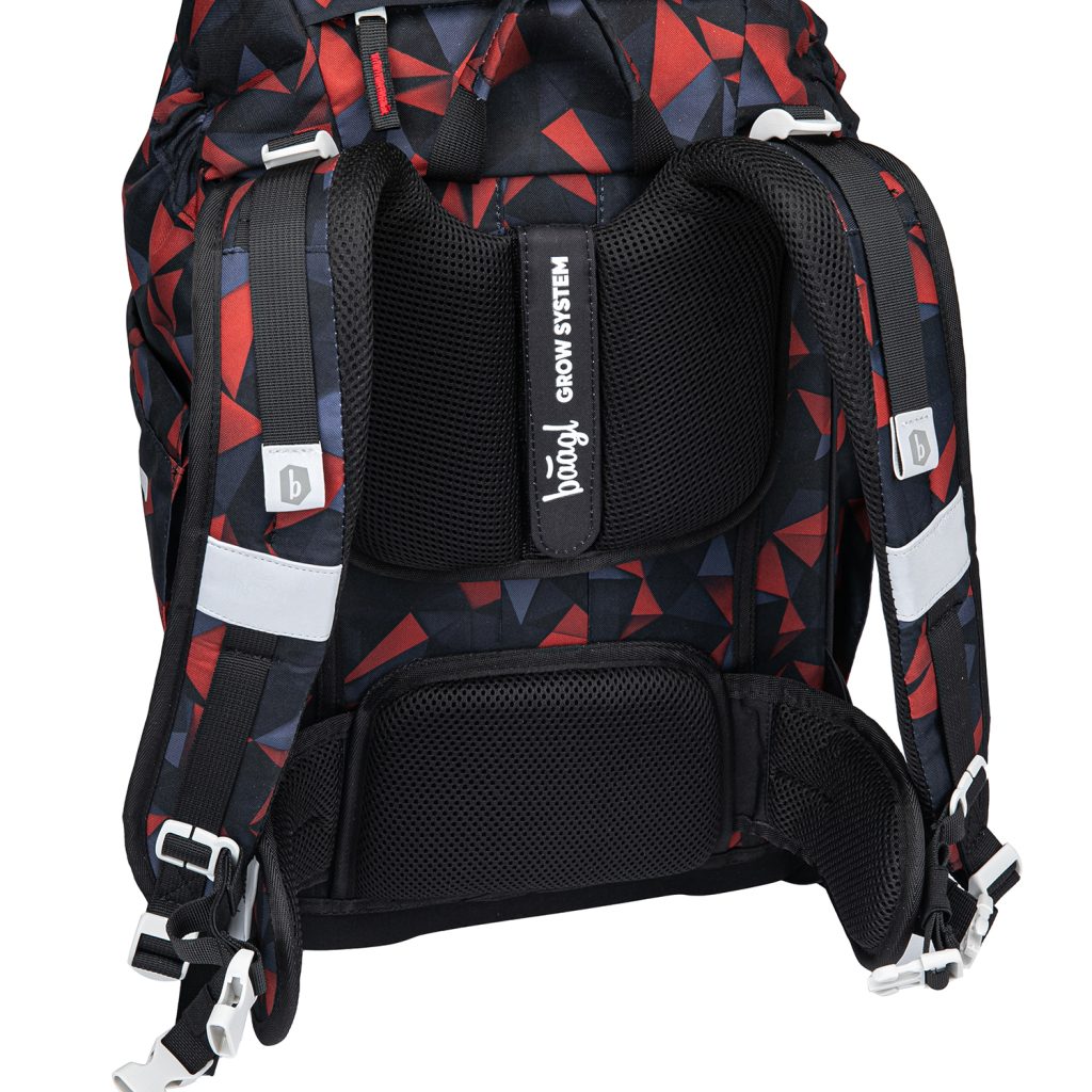 • Ergonomicky tvarovaná záda doplňují plně nastavitelné ramenní popruhy s prodyšným polstrováním, odnímatelný bederní pás a hrudní popruh, které zaručují maximální komfort, stabilitu a správné rozložení zátěže na dětských zádech.