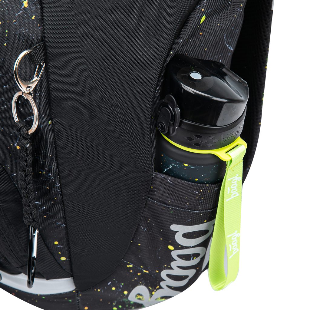 • Jednokomorové vnitřní uspořádání s kapsou a gumičkou pro uchycení desek na zádové straně slouží ke snadné organizaci všech školních pomůcek.