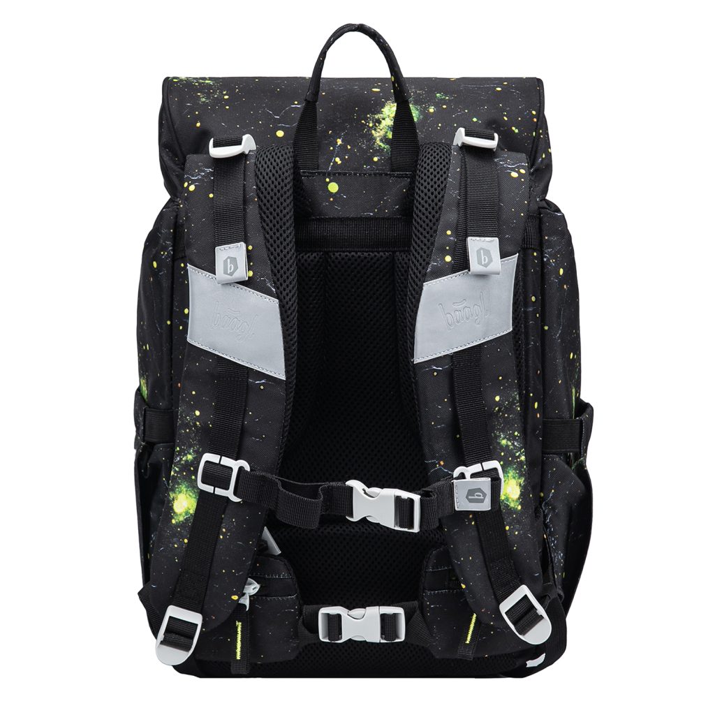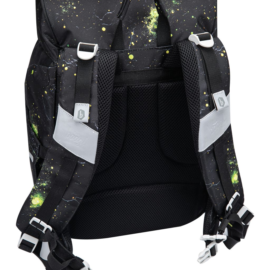 • Batoh vyrobený z recyklovaného a voděodolného materiálu je opatřen řadou reflexních prvků pro maximální bezpečnost dítěte i za snížené viditelnosti.