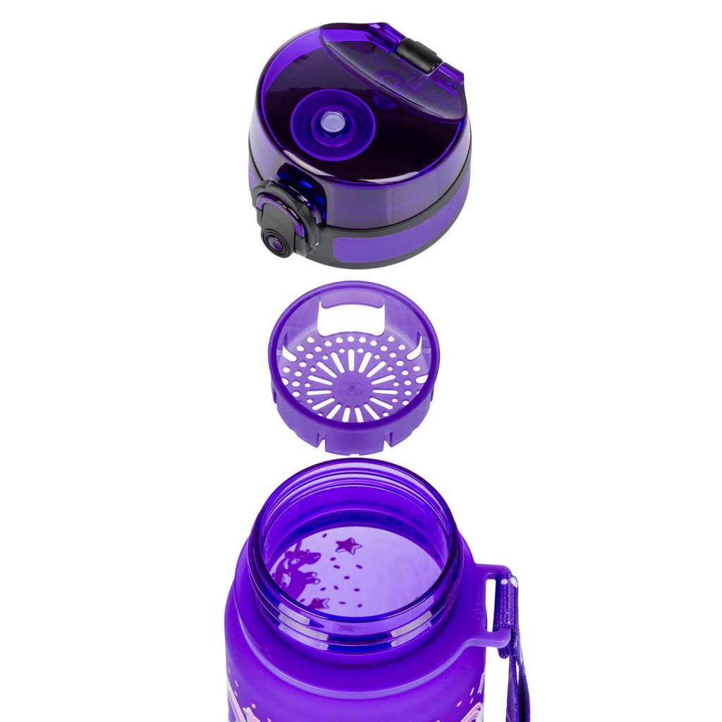 Uzamykatelné víčko nepropustí ani kapku nápoje a zaručuje jednoduché a intuitivní používání. Součástí láhve je i sítko, díky kterému můžete láhev použít i na limonády s ovocem nebo čaj (materiál je vhodný i pro horké nápoje). K láhvi je připevněné také poutko pro pohodlné nošení v ruce.