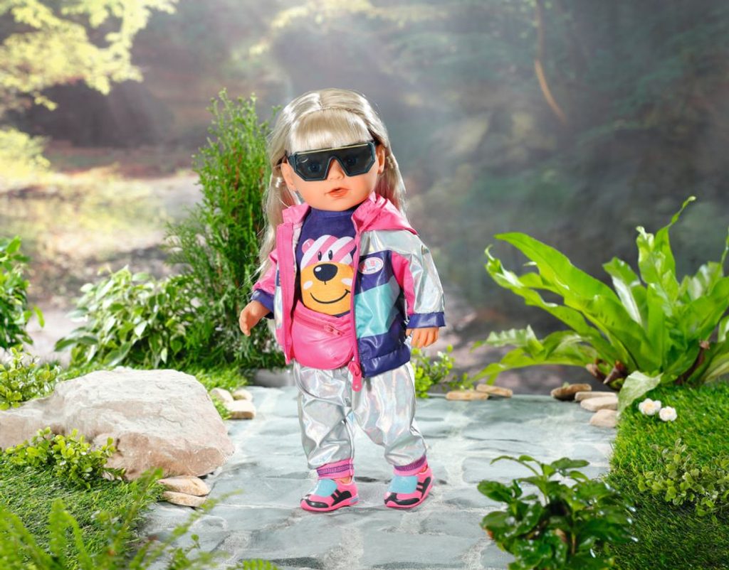S novými cyklistickými doplňky je BABY born připravena na příští cyklovýlet. BABY born teď může šlapat ještě usilovněji, má totiž nové cyklistické boty s protiskluzovou podrážkou. Praktická růžová ledvinka má velikost tak akorát, aby se do ní vešly stylové sluneční brýle a roztomilé náhradní tričko, kdyby náhodou BABY born ukáplo trochu zmrzliny, kterou si vychutnává během odpočinkové zastávky.