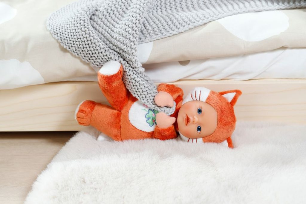 Lištička BABY born for babies je navržena pro miminka. Má měkkou vinylovou hlavičku a látkové tělíčko s kapsičkami na prsty, díky kterým lištička ožije a promění se ve veselého maňáska s liščím ocáskem.