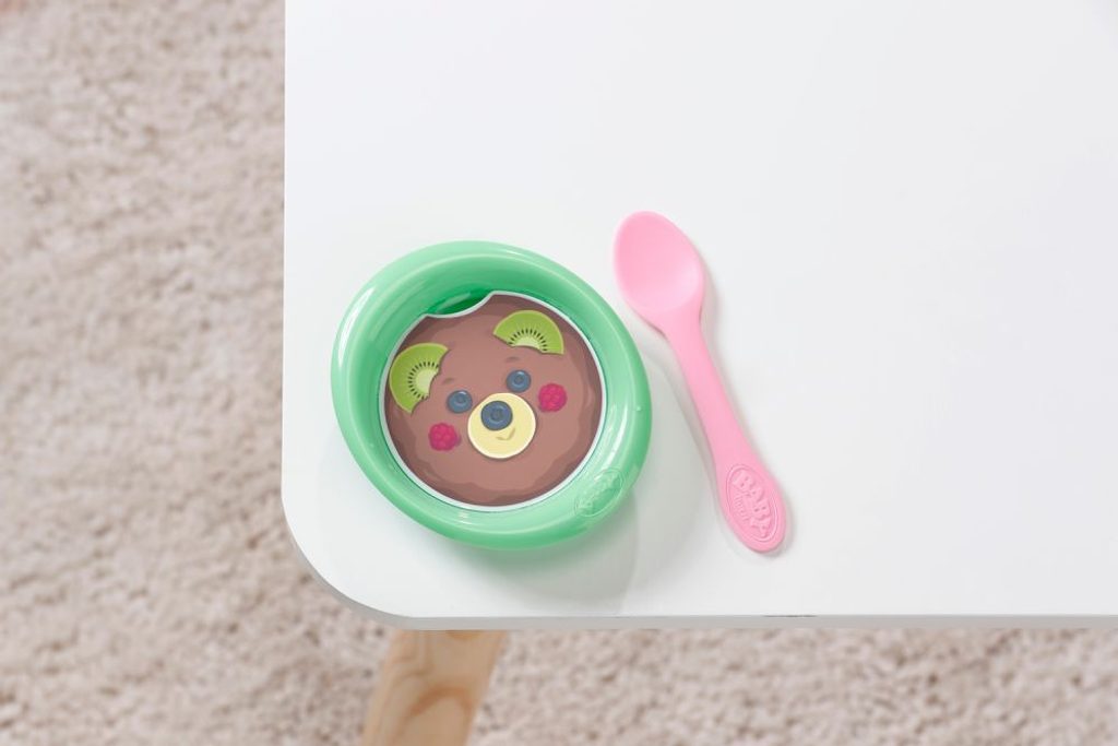 V kvalitě BABY born, která těší celé generace dětí už od roku 1991. Představujeme Jonase! Panenku Jonase, známého z animovaného seriálu BABY born, který můžete sledovat na kanále BABY born v češtině na Youtube, můžete mít nyní i doma. V novém oblečku a s 10 doplňky. Přináší si s sebou i kouzelný talířek: když do talířku s bílou destičkou uvnitř dáte trochu vody, objeví se na destičce lahodné jídlo s roztomilým obličejem, které z krmení panenky udělá ještě větší zábavu. Když Jonase po nakrmení (vodou) nebo po napití vody z lahvičky posadíte na nočník a zmáčknete mu bříško, objeví se na destičce v nočníku obrázek čůrání a kakání. Když se Jonas napije vody z lahvičky, může ronit slzy a je třeba ho utišit. Pomoci může třeba kouzelný dudlík: když ho v pusince otočíte o 180 stupňů, očička se mu buď otevřou nebo zavřou. Otočte ještě jednou a stane se opak. Jonas ale dokáže ještě víc: má pohyblivé klouby a můžete ho vzít i do vany. Nyní dokonce uschne rychleji, než kdy dříve: abyste panenku po hraní dobře vyčistili, je k tomu možné odejmout jednu nohu a vytvořit tím větší otvor pro čištění panenky. Voda tak z panenky snadněji odteče. Pro ještě zajímavější hru si Jonas do svého nového domova kromě lahvičky, dudlíku, talířku s destičkou s obrázkem jídla a nočníku s destičkou s obrázkem čůrání a kakání přináší také plenku, rodný list, arch samolepek a dva náramky přátelství – jeden pro panenku a jeden pro její malou maminku – na důkaz dlouhého a láskyplného kamarádství mezi dítětem a panenkou.