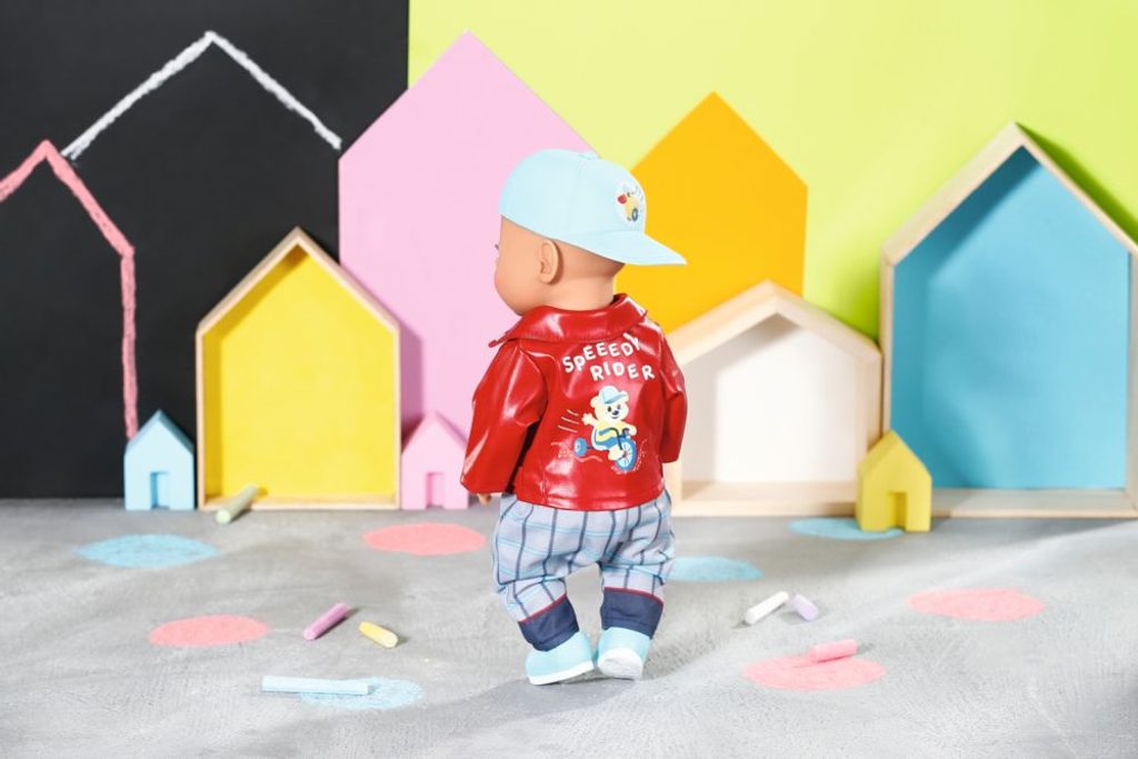 BABY born Little Módní oblečení pro panenky velikosti 36 cm. Součástí je bunda, kalhoty, kšiltovka a tenisky. Včetně ramínka.