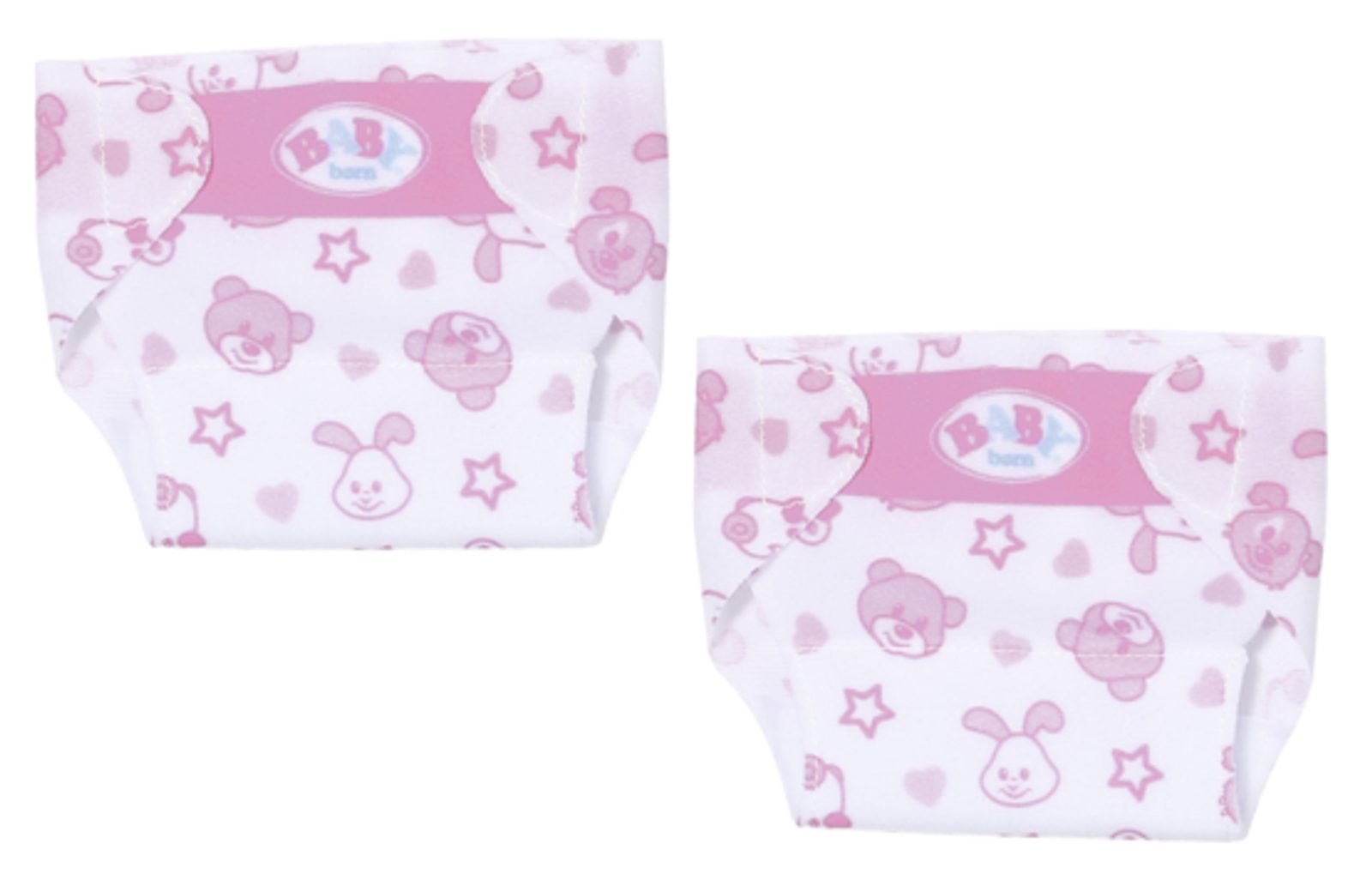 Měkké, pohodlné, růžovo-bílé. Přesně takové jsou látkové plenky pro panenky BABY born Little. Praktické látkové plenky se zavírají na dva suché zipy a díky nim krásně sedí, ať se děje, co se děje. Protože jsou ozdobeny krásným potiskem, není žádná ostuda je ukazovat i ostatním. Růžové hvězdičky, srdíčka a veselé obličeje medvídka Bruna, zajíčka Bunnyho, pejska Bella a kačenky Berty dělají z plenky roztomilou nezbytnost.