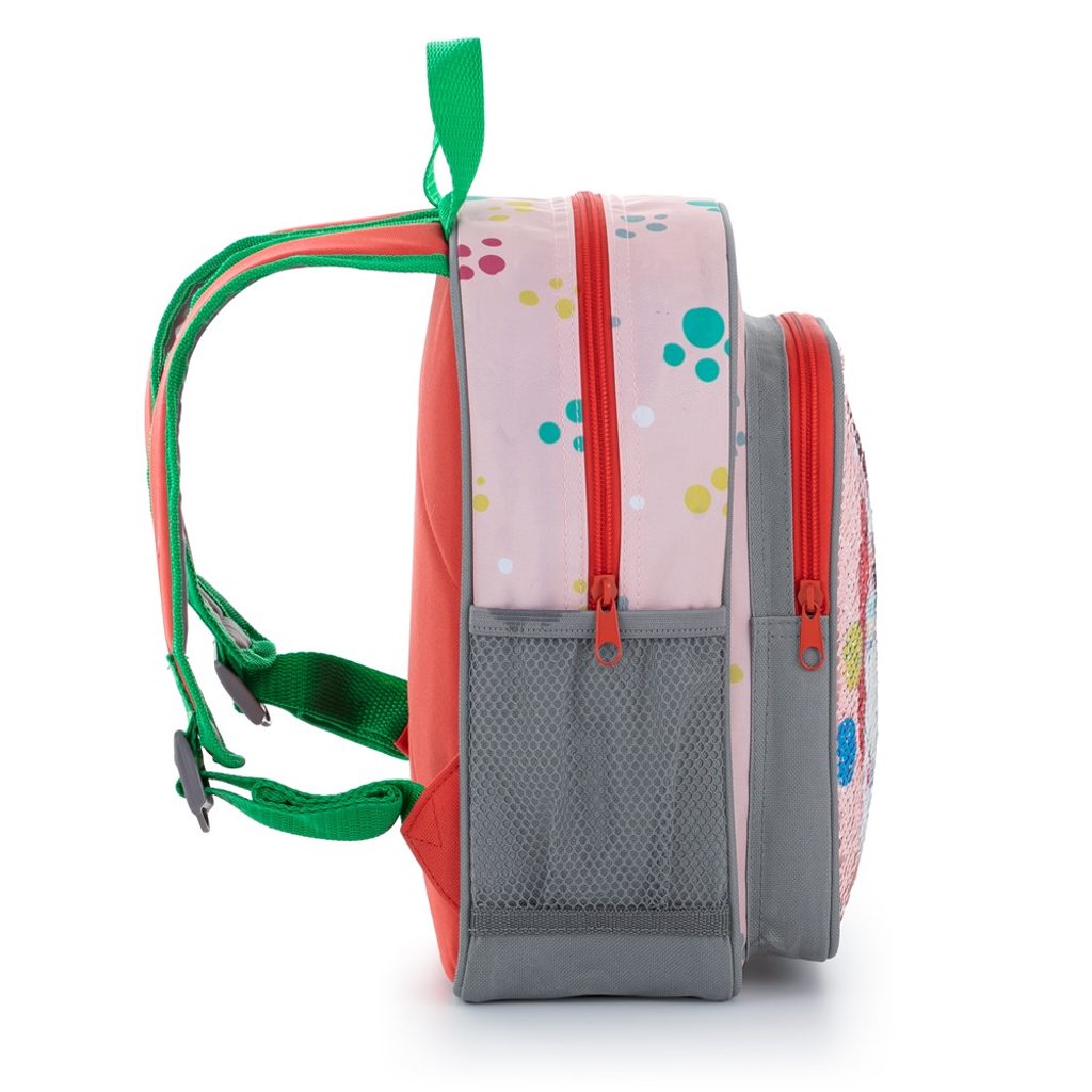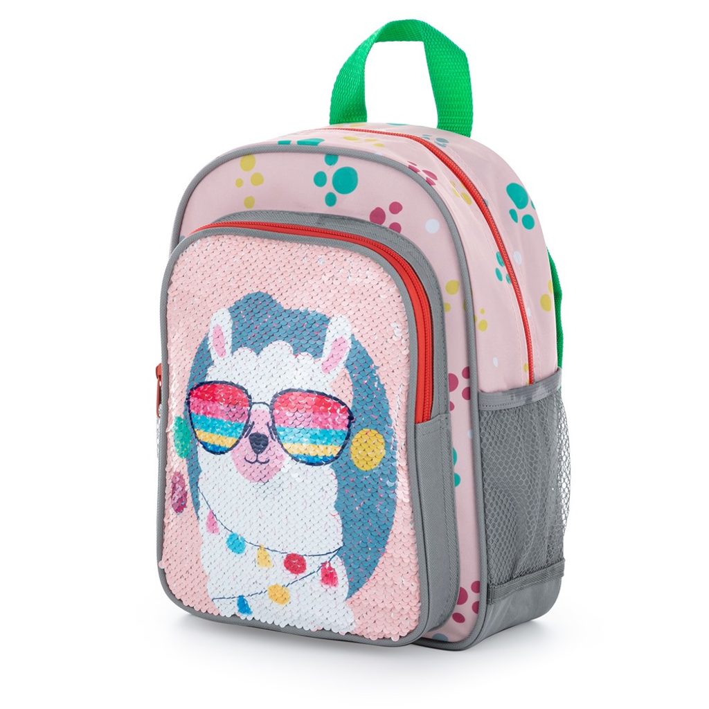Menší batůžek vhodný pro děti předškolního věku na volnočasové aktivity. Má jednu velkou kapsu s flitrovým efektem, menší kapsu na svačinu a postranní kapsičky na lahev na pití. Ideální pro děti od 3 do 6 let.