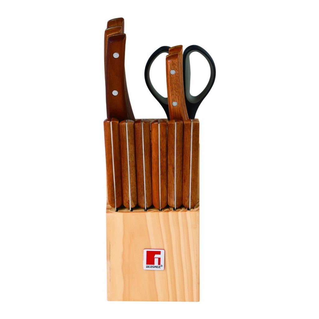 Sada nožů v dřevěném bloku 13 ks NATURE je výbornou alternativou pro kuchaře různých úrovní, na jejíž výrobu byl použit kvalitní materiál: nerez ocel s nepřilnavým povrchem, vynikají perfektní ostrostí čepele a designem. Velmi oceníte i ergonomicky tvarovanou rukojeť, díky které se vám nože budou skvěle držet. Celá sada je dílem výrobce BERGNER, jež se výrobě nožů věnuje poměrně dlouho a jsou řádně odzkoušeny.