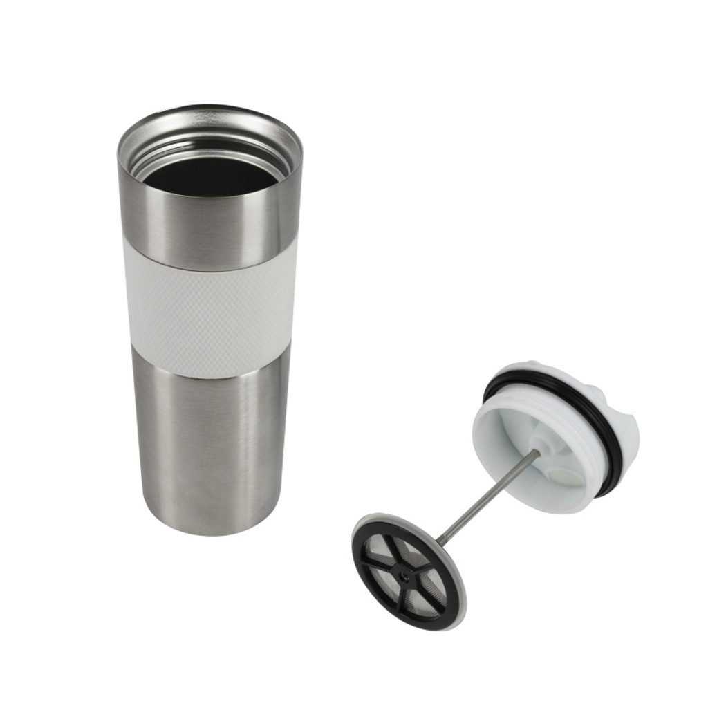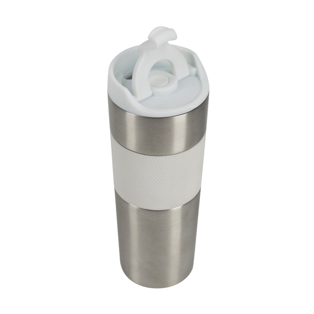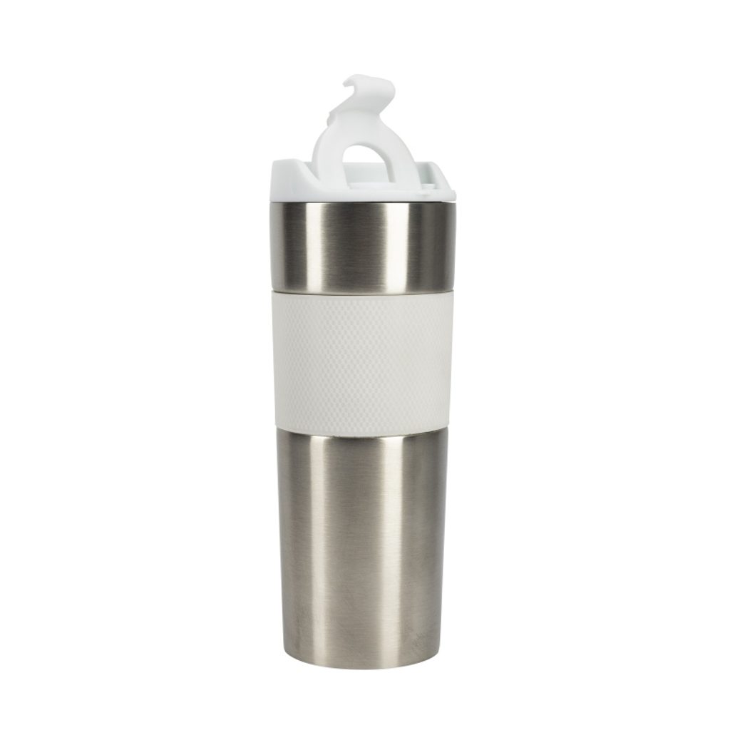 Vezměte si svůj oblíbený nápoj do práce, na pláž, do hor nebo na exkurzi s tímto pohodlným cestovním hrnkem na kávu nebo čaj. Hrnek o objemu 460 ml je vyroben z pevné a odolné nerezové oceli, která díky dvojité stěně izoluje teplotu, aby váš nápoj zůstal teplý nebo studený podle vašich preferencí. Vnější tělo je opatřeno bílým silikonovým páskem pro lepší úchop a bílé polypropylenové víko zajišťuje snadné používání.