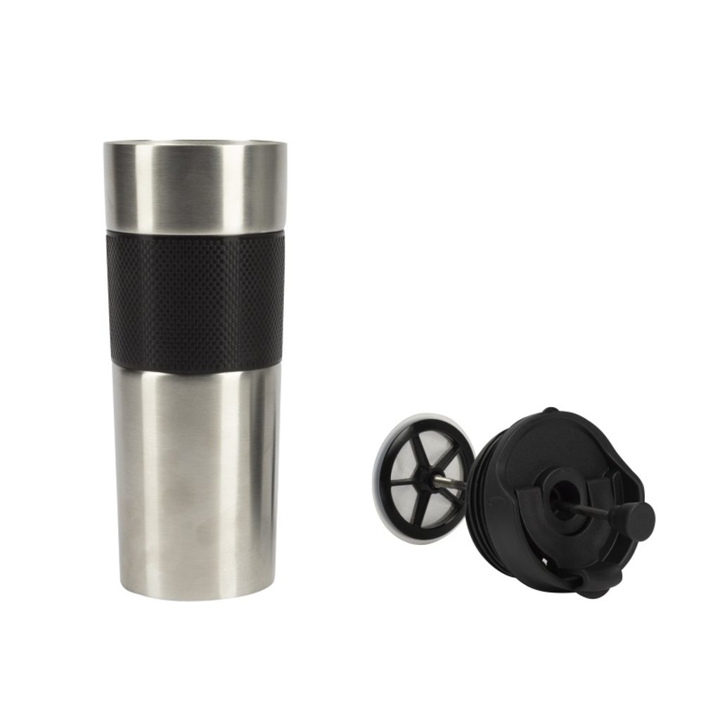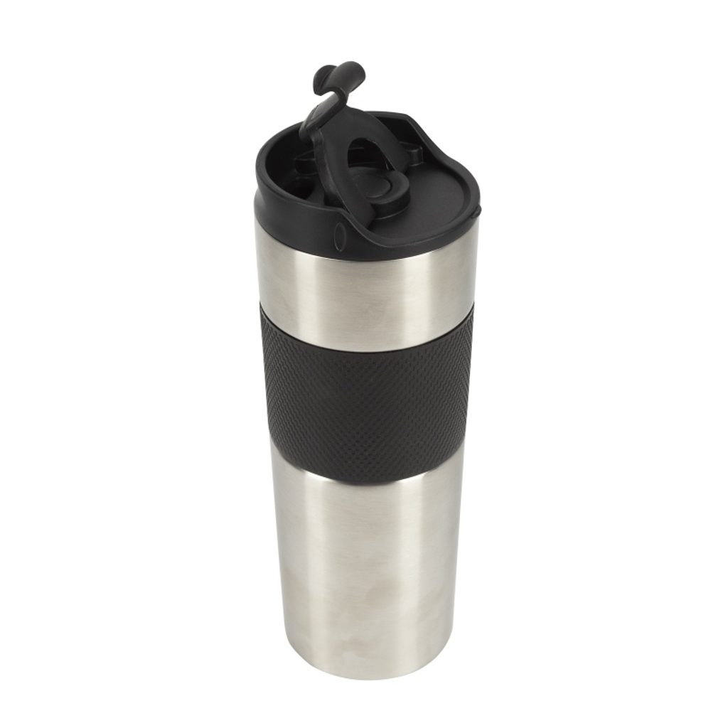 Vezměte si svůj oblíbený nápoj do práce, na pláž, do hor nebo na exkurzi s tímto pohodlným cestovním hrnkem na kávu nebo čaj. Hrnek o objemu 460 ml je vyroben z pevné a odolné nerezové oceli, která díky dvojité stěně izoluje teplotu, aby váš nápoj zůstal teplý nebo studený podle vašich preferencí. Vnější tělo je opatřeno černým silikonovým páskem pro lepší úchop a černé polypropylenové víko zajišťuje snadné používání.