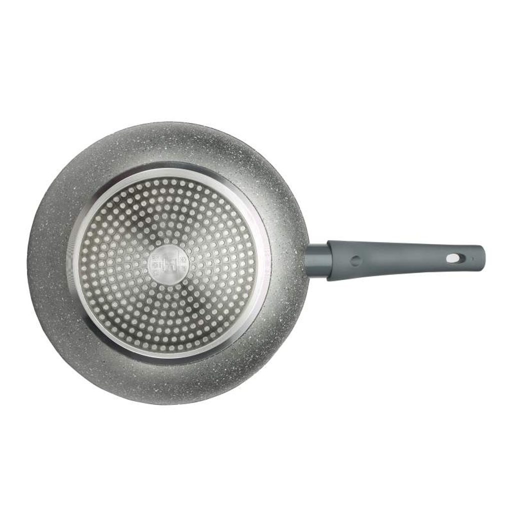 BERGNER Wok s nepřilnavým povrchem 28 cm Orion BG-8521-MBG • 28x7,2 cm wok. •Kapacita: 3,75L. •Materiál: kovaný hliník. •Nepřilnavý wok: má mramorovaný nepřilnavý povrch. •Vhodné pro všechny typy sporáků včetně indukce. • Ergonomická rukojeť s měkkým povrchem a texturou hadí kůže. • Šedé provedení s bílými puntíky. • Bez obsahu PFOA. •Péče: Pro prodloužení životnosti výrobku se doporučuje ruční mytí.Wok patřící do kolekce Orion značky Bergner. Jeho velikost, 28 cm v průměru a 7,2 cm na výšku, a jeho objem 3,75 l z něj dělají ideální pro přípravu jakéhokoli typu individuálních receptů nebo pro dvě osoby a překvapí vaši rodinu a přátele širokou nabídkou jídel. Wok je vyroben z kovaného hliníku, vysoce kvalitního a odolného materiálu, který umožňuje rychlou a rovnoměrnou distribuci tepla, zabraňuje vzniku horkých míst a tím šetří velké množství energie. Tento materiál navíc poskytuje kusu velmi dobré vlastnosti lehkosti, udržení tepla při vysokých teplotách a odolnosti vůči rizikům koroze, nárazům a poškrábání. Wok má nepřilnavou vnitřní vrstvu Marble+, která poskytuje rovnoměrnější efekt uvolňování jídla, zabraňuje přilnutí jídla k jeho povrchu a usnadňuje čištění. Tento povlak je navíc extrémně odolný a odolný proti poškrábání. Wok má bodovou indukční základnu, díky které je vhodný pro všechny typy sporáků: sklokeramické, elektrické, halogenové, plynové a indukční. Design woku v šedé barvě s bílými puntíky se skvěle hodí do každého typu kuchyně. Navíc má ergonomickou rukojeť s texturou hadí kůže a povrchovou úpravou soft touch, která pozvedne váš způsob vaření a zároveň vás ochrání před popálením při manipulaci s kusem. Díky všem těmto vlastnostem je ideální pro všechny kuchaře, od začátečníků až po ty nejzkušenější. Pro prodloužení životnosti výrobku se doporučuje ruční mytí.