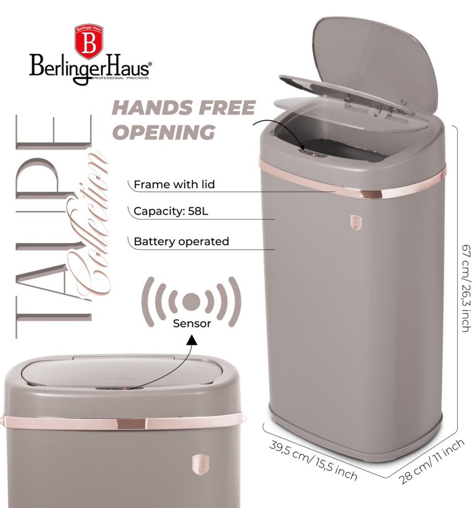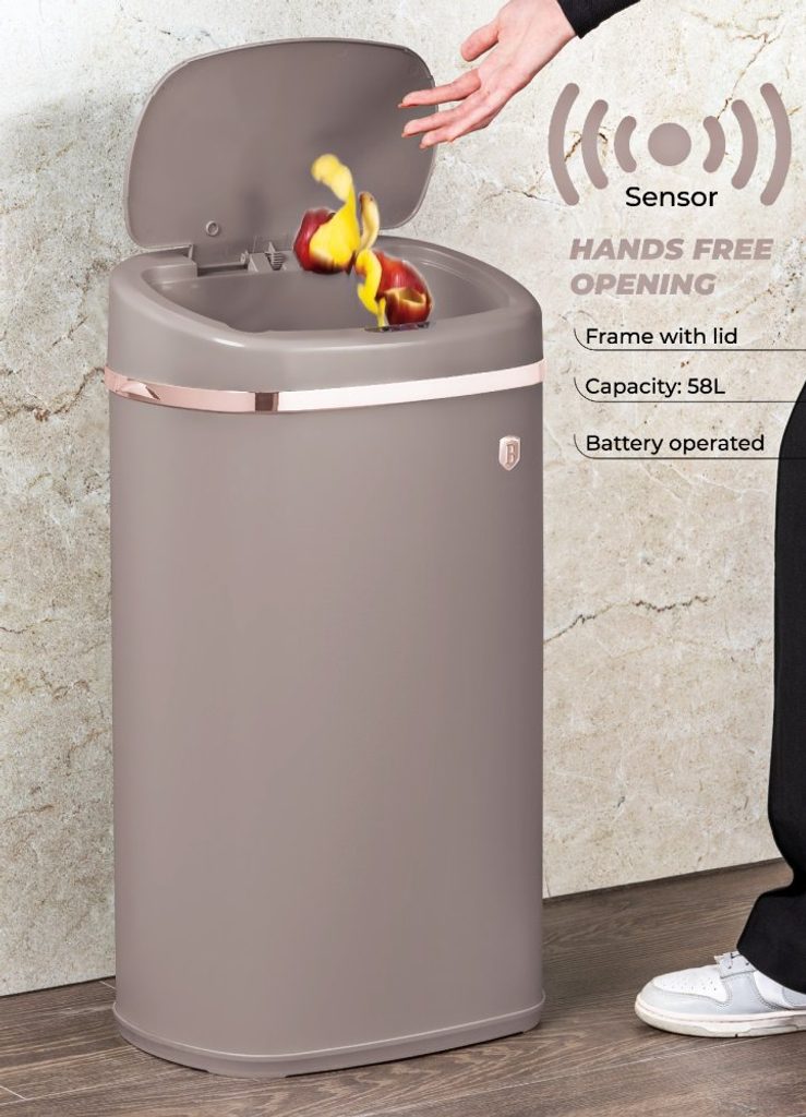 BERLINGERHAUS Bezdotykový odpadkový koš se senzorem 58 l Taupe Collection BH-9523 - odpadkový koš vhodný do kuchyně i koupelny nebo wc