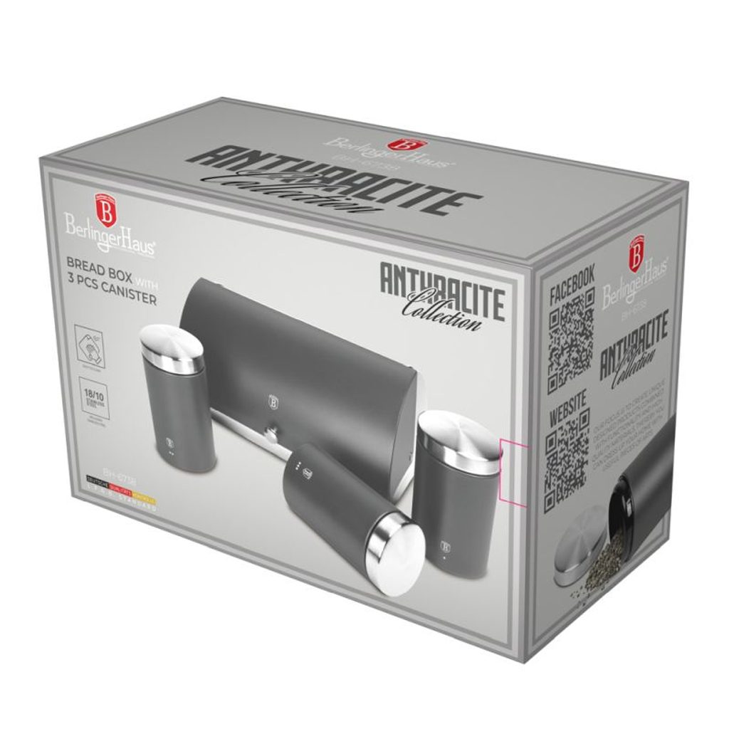 Tento elegantní set chlebníku a tří praktických dóz je ideálním doplňkem pro moderní kuchyň. Vysoká kvalita nerezové oceli, stylová matná antracitová barva a sofistikovaný design vytvářejí perfektní kombinaci estetiky a praktičnosti. Set obsahuje chlebník, dózu na cukr, dózu na čaj a dózu na kávu – všechny vyrobené z kvalitní nerezové oceli a navržené tak, aby poskytovaly maximální komfort při každodenním používání.