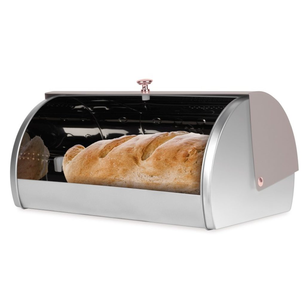 Chlebník: Rozměry 38,5 x 28 x 18,5 cm – ideální pro skladování pečiva, s velkým úložným prostorem a pohodlným otevíráním a zavíráním.