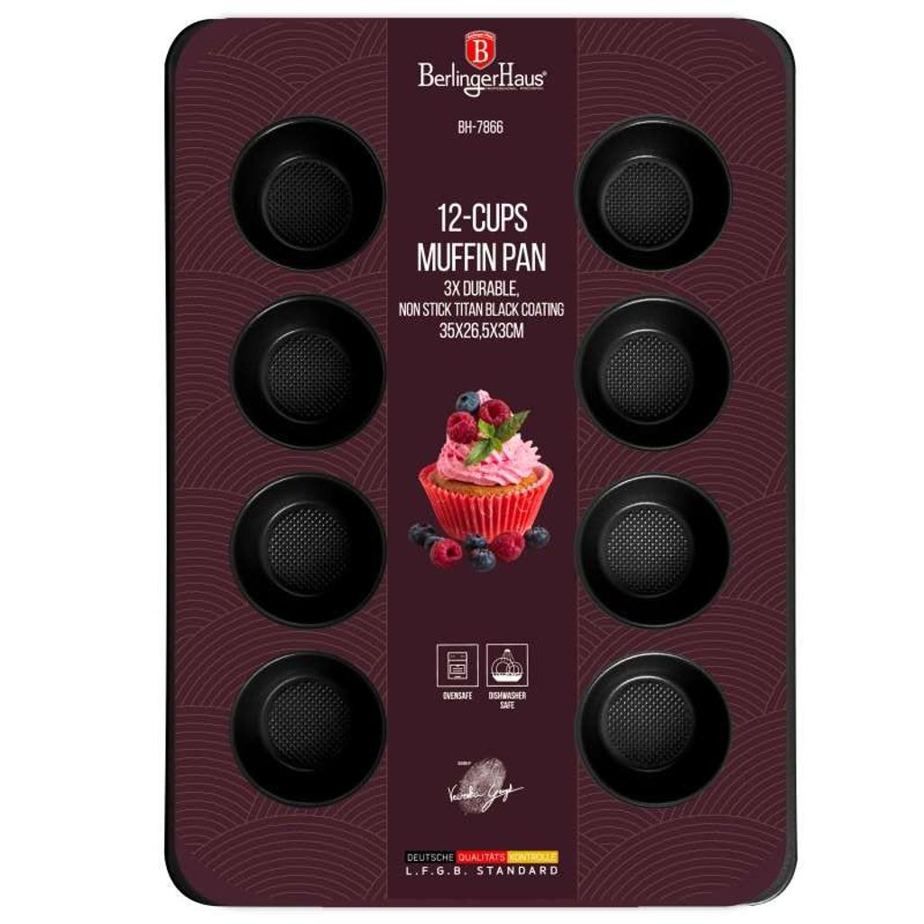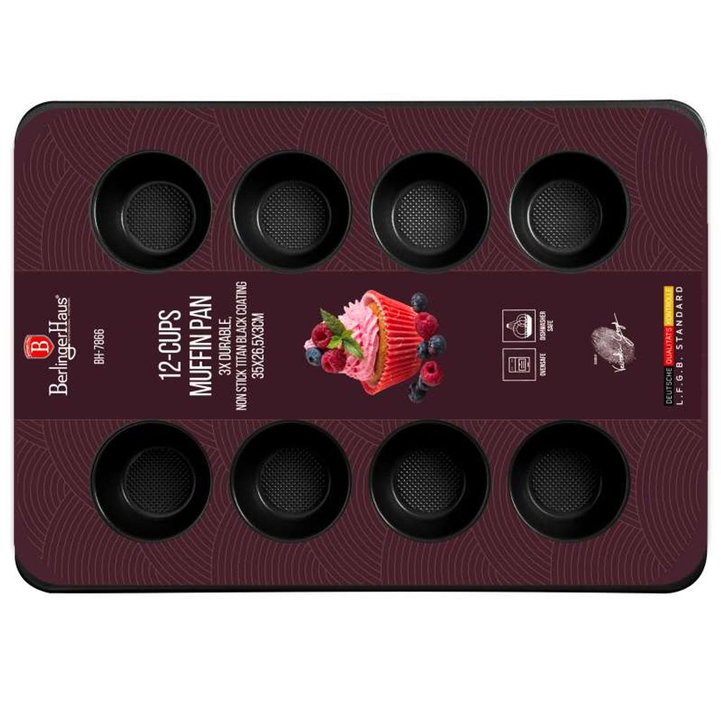 BERLINGERHAUS Forma na muffiny s nepřilnavým povrchem 12 ks Burgundy BH-7866 - Materiál: uhlíková ocel s titanovým nepřilnavým povrchem