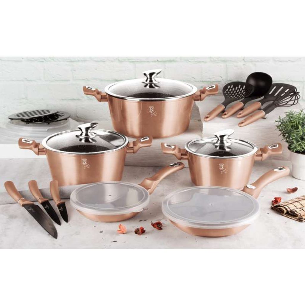BERLINGERHAUS Kastrol s mramorovým povrchem a poklicí 24 cm Rosegold Metallic Line BH-1515
