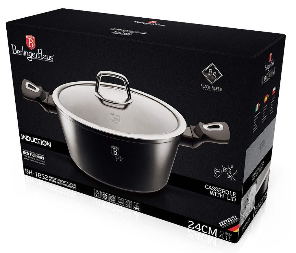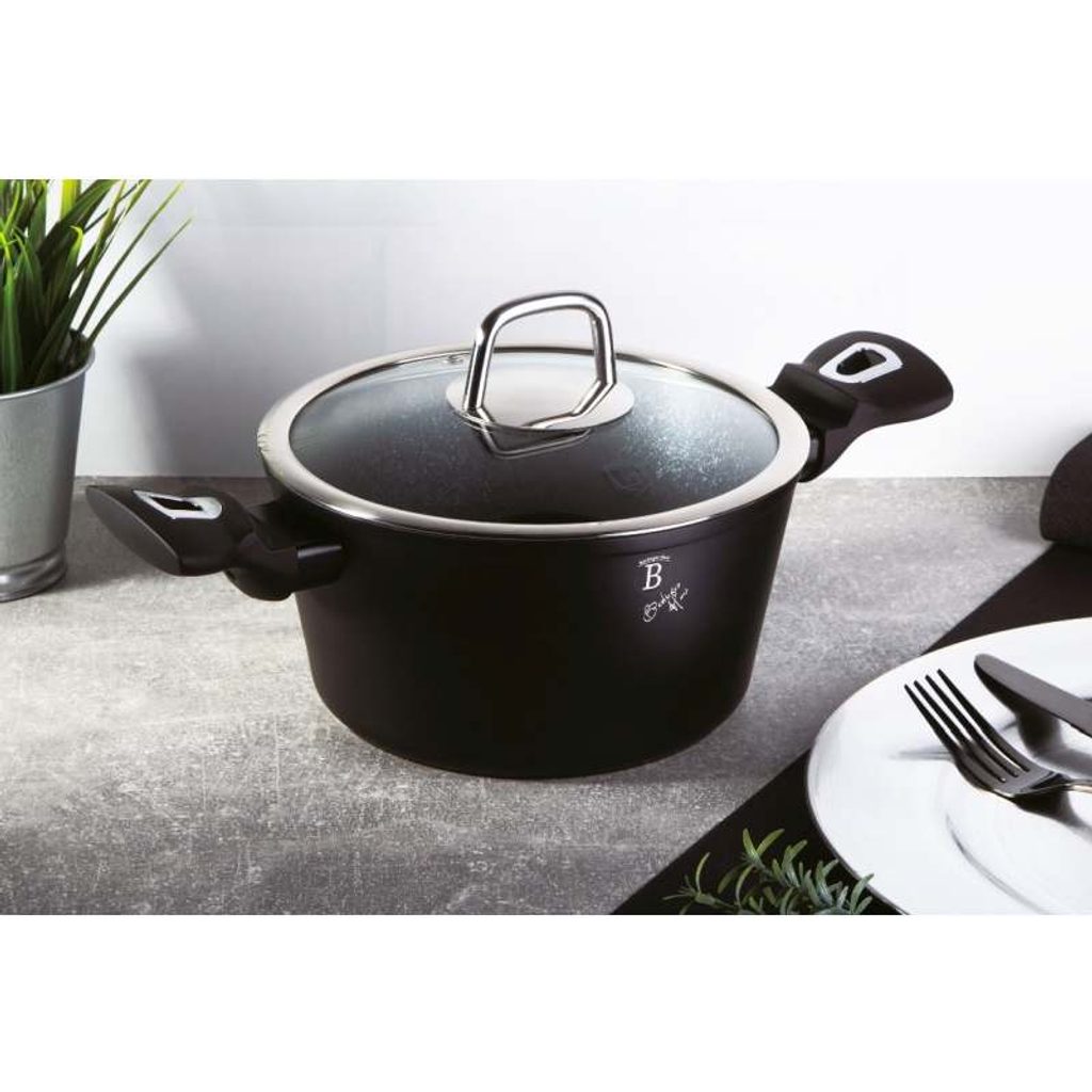 BERLINGERHAUS Kastrol s poklicí s mramorovým povrchem 24 cm Black Silver Collection BH-1852
