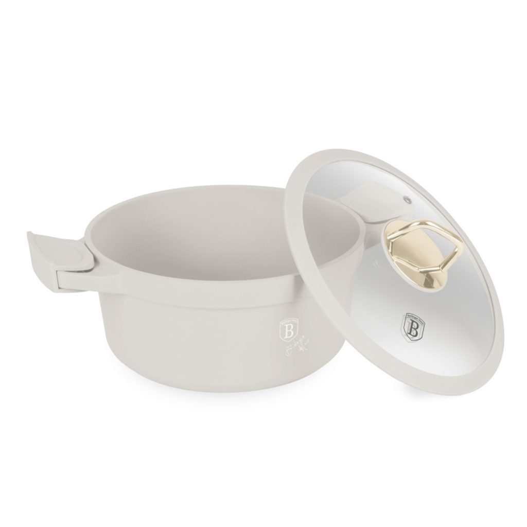 Elegantní kastrol z kolekce Sahara Collection s titanovým povrchem je ideálním pomocníkem pro každodenní vaření. S objemem 4,4 l a průměrem 24 cm je vhodný pro přípravu různých pokrmů. Skleněná poklice se silikonovým okrajem zajišťuje bezpečné vaření, zatímco odnímatelné silikonové rukojeti umožňují snadnou manipulaci. Kastrol je kompatibilní s indukčními, sklokeramickými, plynovými i elektrickými varnými deskami a je vhodný také pro použití v troubě.