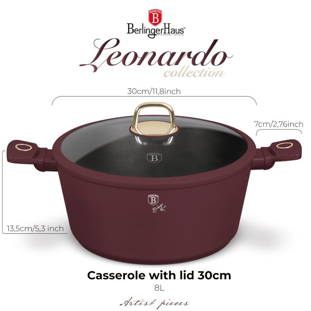 Stylový a objemný kastrol z kolekce Leonardo v elegantní matné bordó barvě je ideálním pomocníkem pro každodenní vaření i větší rodinné hostiny. Kvalitní zpracování a moderní design zaručují dlouhou životnost a pohodlí při používání.