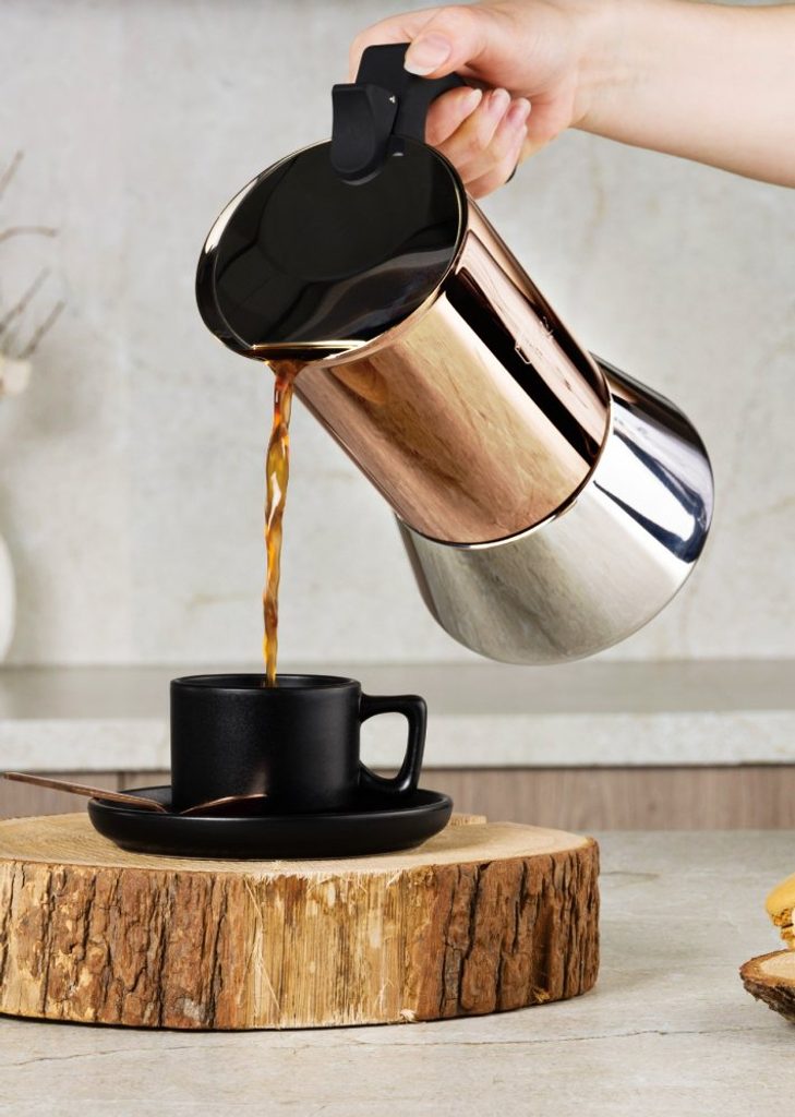 Vaří se na mírném ohni. Po pár minutách se ve spodní nádobě začne vytvářet pára, která vytlačí vařící vodu přes trychtýř s mletou kávou do horní části konvice, kde se nám již hromadí hotová káva. Tu pak můžeme rovnou servírovat do šálku. Její chuť bude intenzivní, výrazná, s nezapomenutelným aroma.