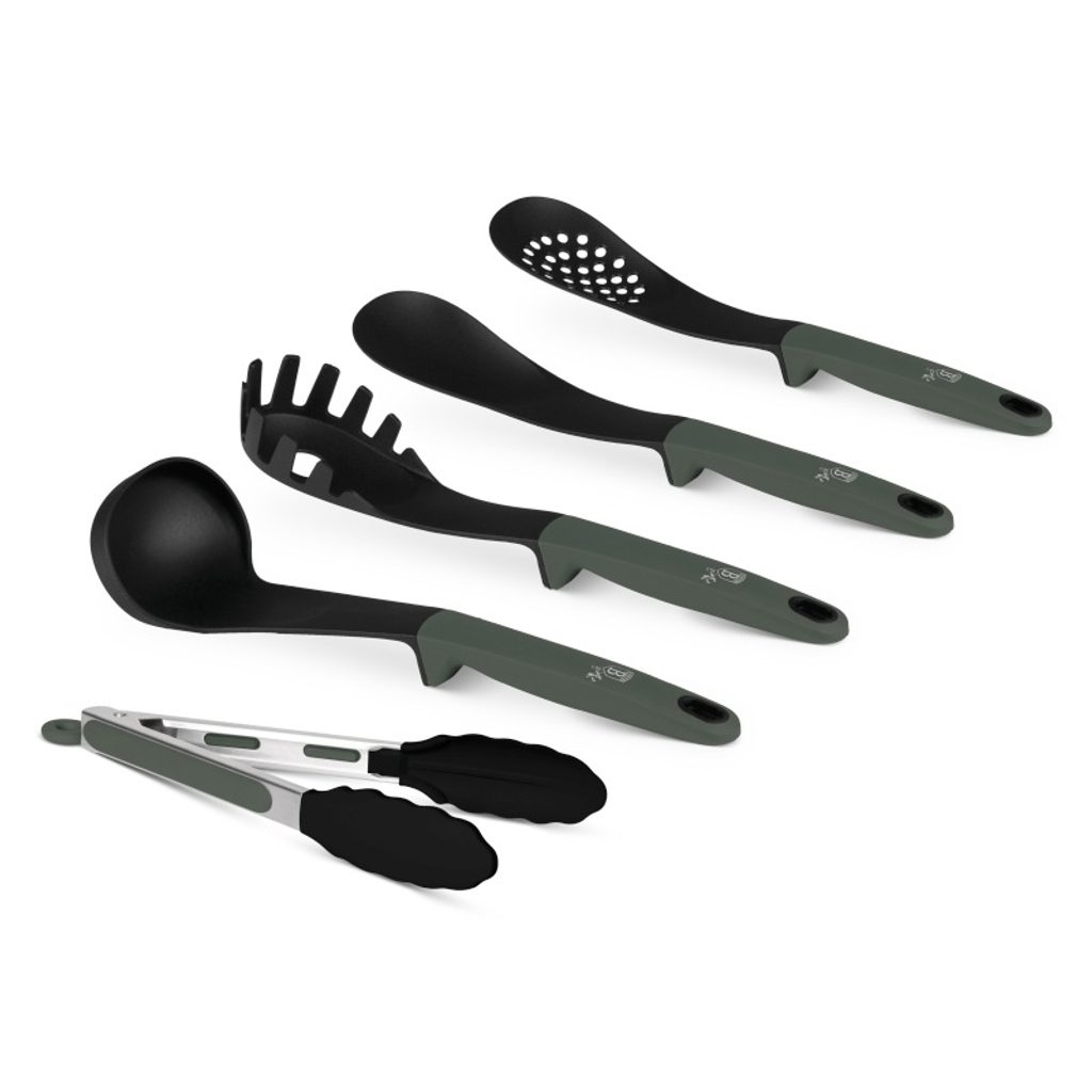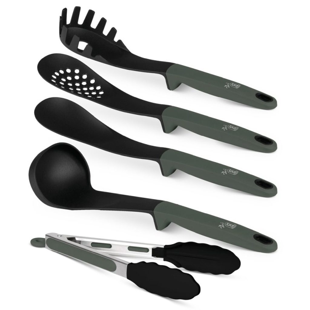 Kuchyňské nářadí, které spojuje styl a funkčnost – tato elegantní 5dílná sada v matné zelené barvě přináší praktičnost a moderní design do každé kuchyně. Je ideální pro každodenní vaření a zároveň šetrná k nádobí i životnímu prostředí.
