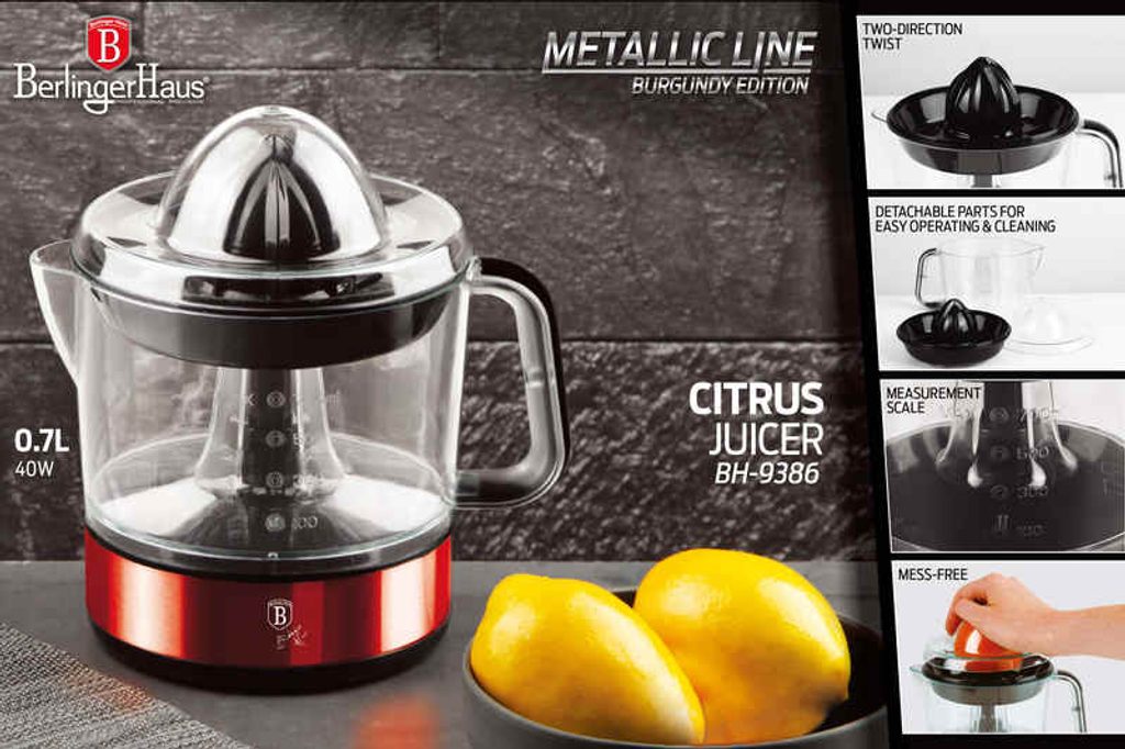 BERLINGERHAUS Lis na citrusy elektrický Burgundy Metallic Line BH-9386 - elektrický lis na citrusy Vám usnadní vymačkávání ovocných šťáv