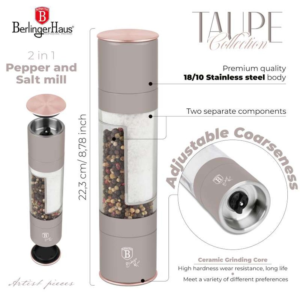 BERLINGERHAUS Mlýnek na pepř a sůl dvojitý Taupe Collection BH-8579