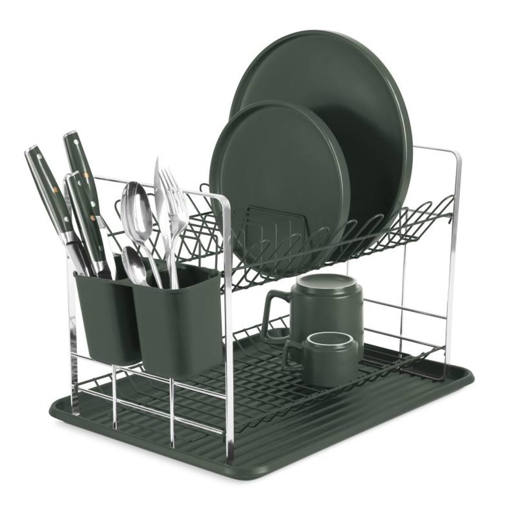 I v malé kuchyni můžete mít pořádek a styl! Tento víceúrovňový odkapávač v elegantní matné zelené barvě je navržen tak, aby maximálně využil prostor a přitom působil vzdušně a moderně. Díky kombinaci pevného železa a odolného plastu nabízí stabilitu i dostatek místa pro nádobí, sklenice a příbory. Flexibilní uspořádání vám umožní přizpůsobit si ho podle svých potřeb – ať už ho postavíte vedle dřezu nebo na kuchyňský pult, vždy bude vypadat skvěle a sloužit naplno.