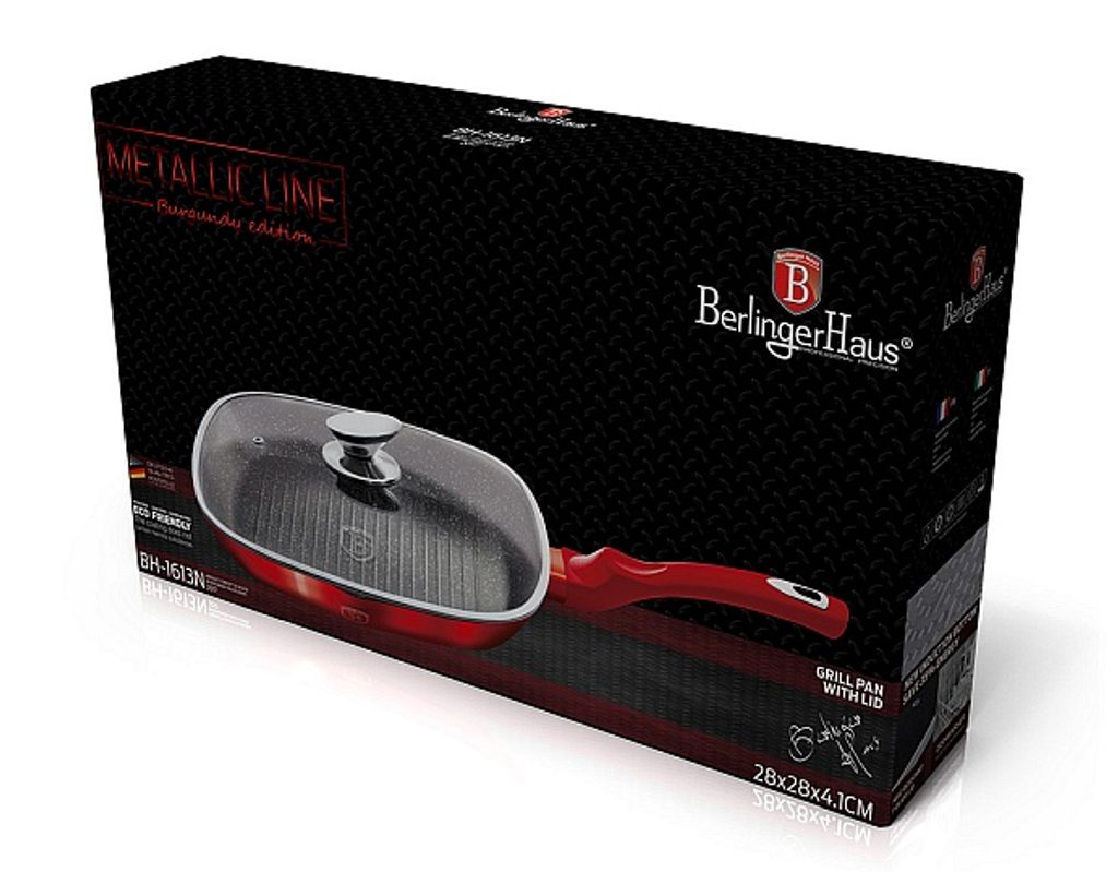 BERLINGERHAUS Pánev grilovací s poklicí a mramorovým povrchem 28 cm Burgundy Metallic Line BH-1613