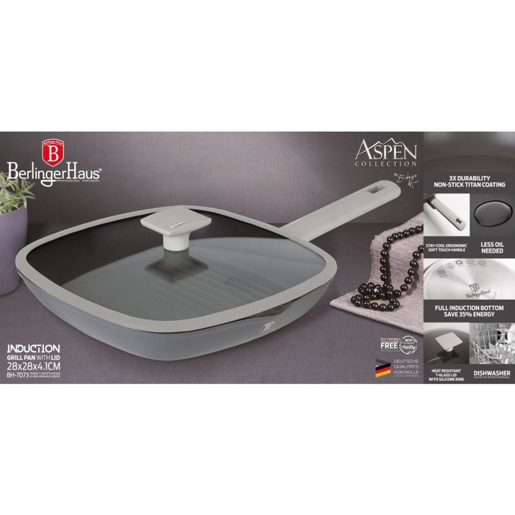 BERLINGERHAUS Pánev grilovací s poklicí s titanovým povrchem 28 cm Aspen Collection BH-7073