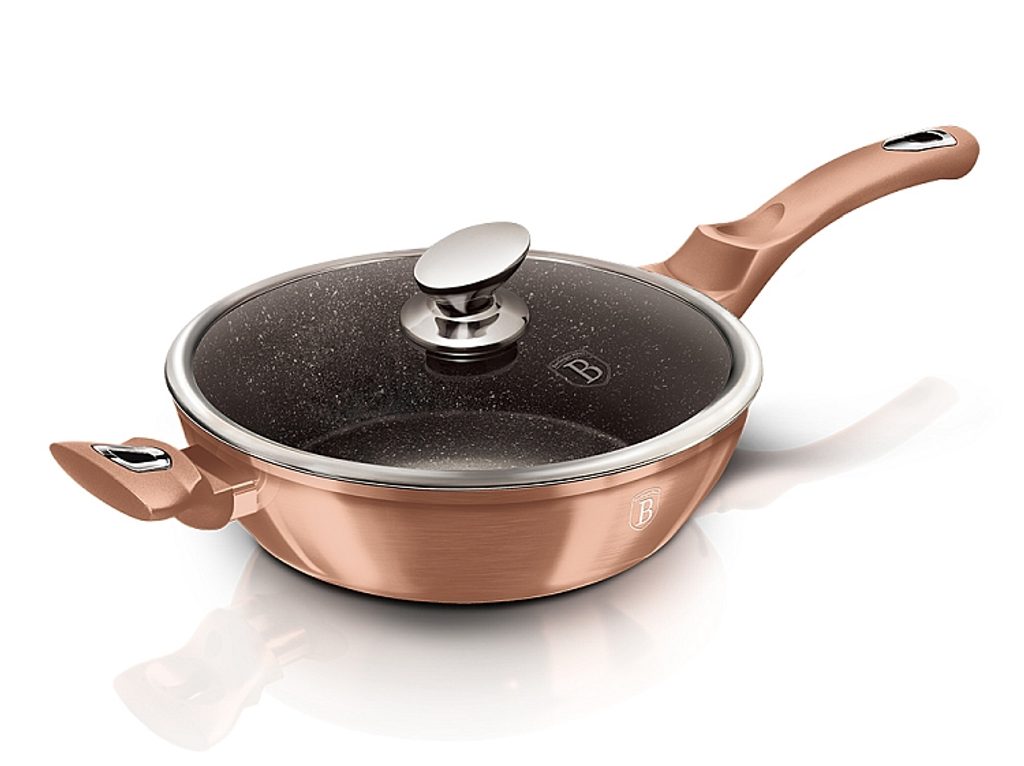 BERLINGERHAUS Pánev hluboká s mramorovým povrchem a poklicí 28 cm Rosegold Metallic Line BH-1518