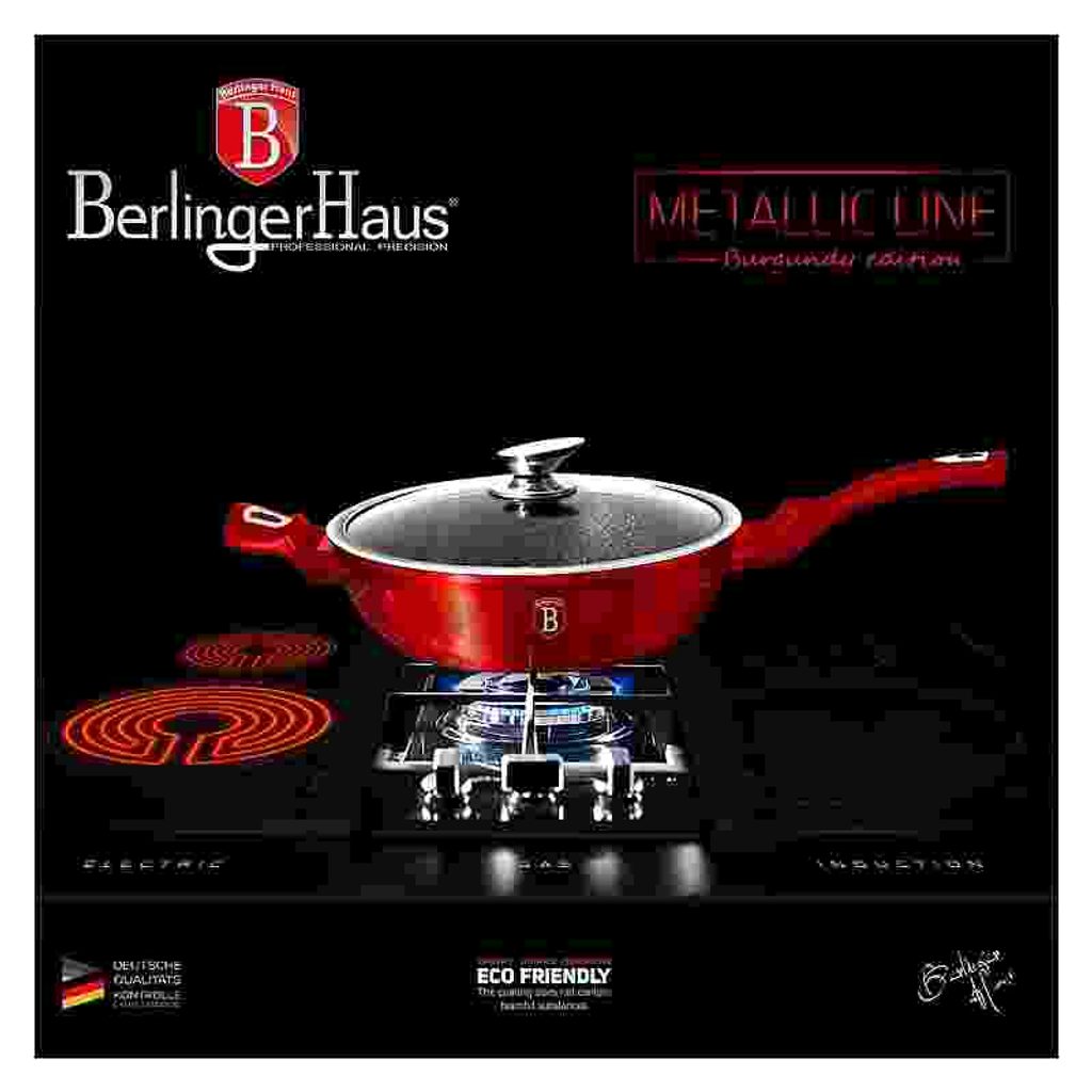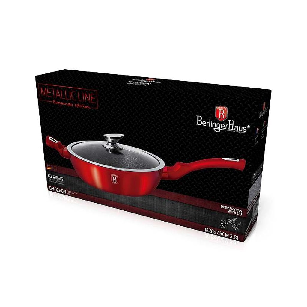 BERLINGERHAUS Pánev hluboká s mramorovým povrchem a poklicí 32 cm Burgundy Metallic Line BH-1261