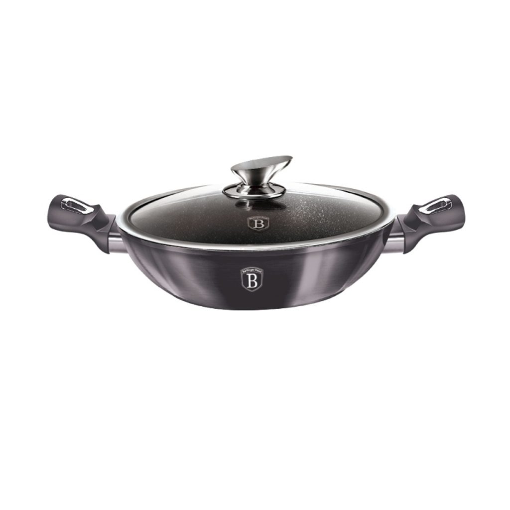 BERLINGERHAUS Pánev hluboká s poklicí 30 cm Carbon PRO Line BH-7111 - velká hluboká pánev s mramorovým povrchem, poklicí a dvěmi rukojeťmi v atraktivním designu
