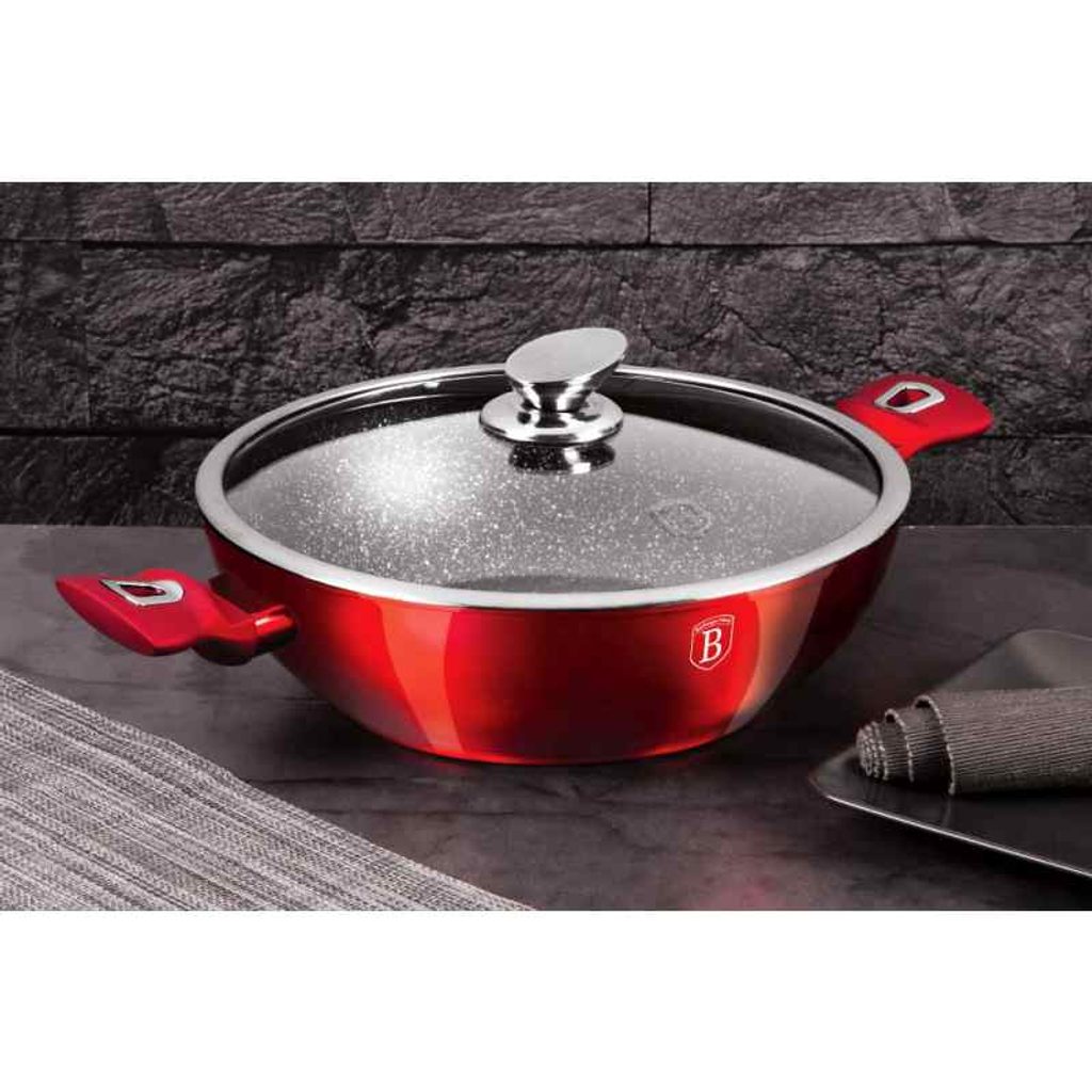 BERLINGERHAUS Pánev Wok s poklicí 30 cm Burgundy Metallic Line BH-7110