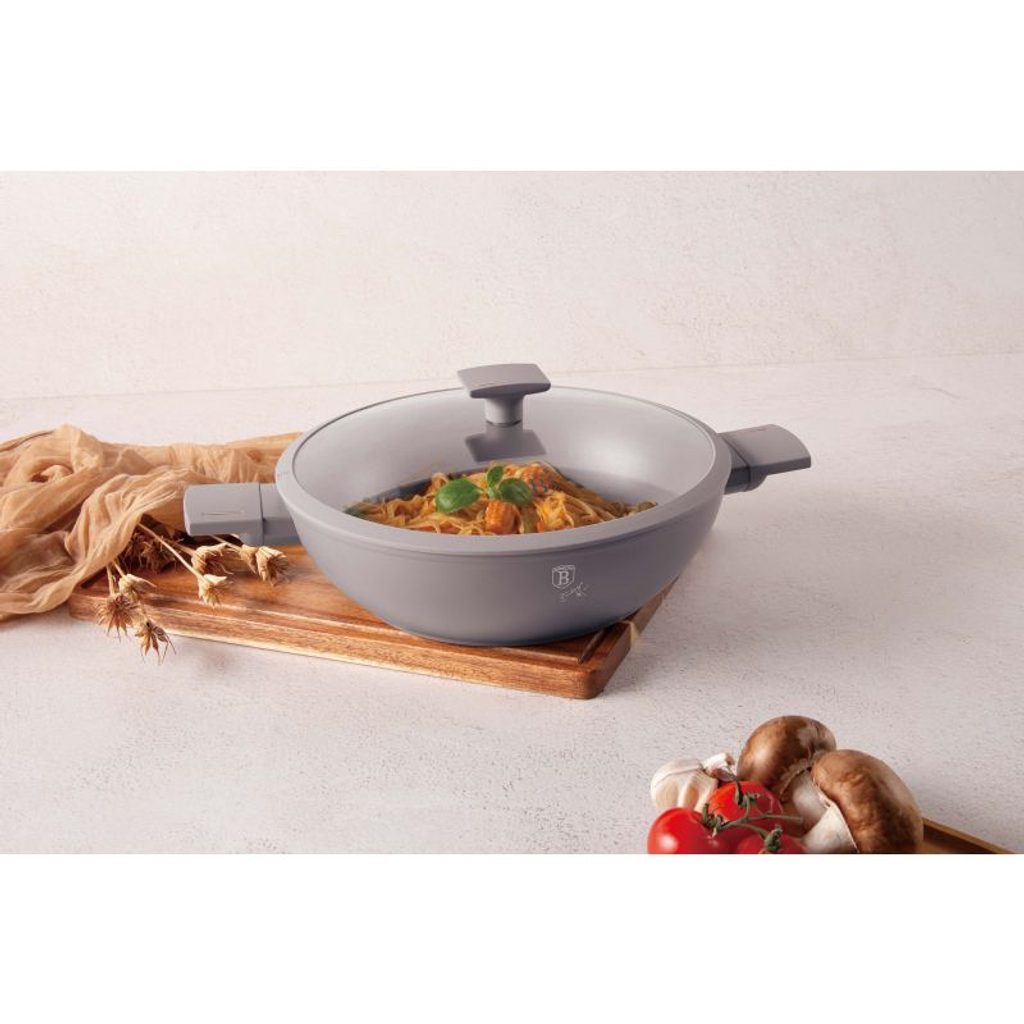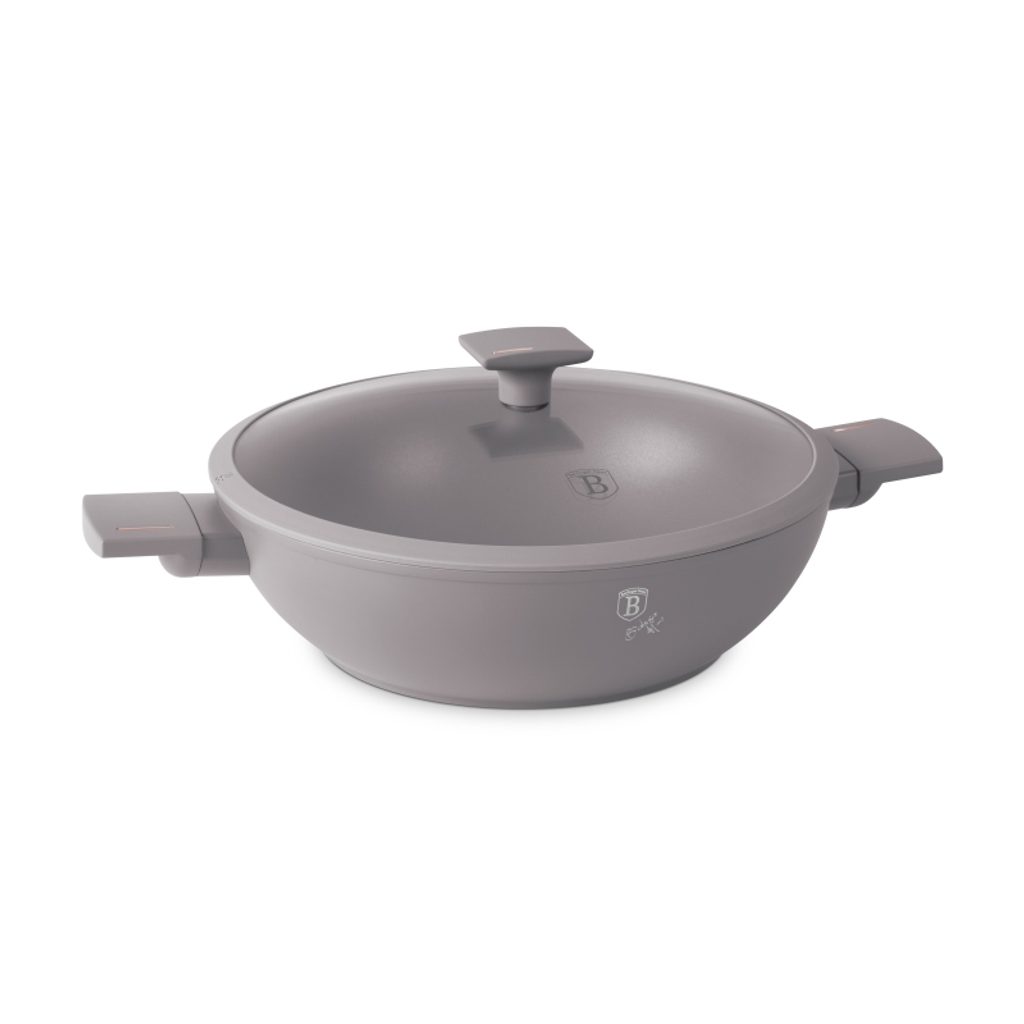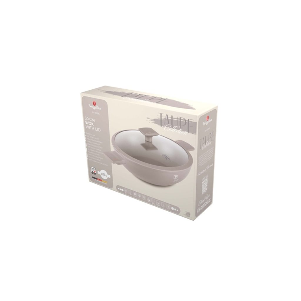 BERLINGERHAUS Pánev WOK s titanovým povrchem a poklicí 30 cm Taupe Collection BH-8095 - Materiál: kovaný hliník s nepřilnavým povrchem titanPro
