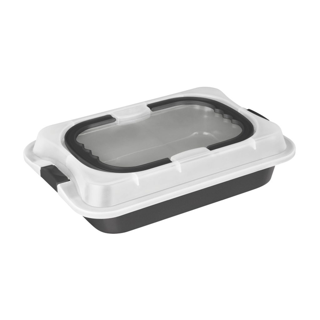 Dopřejte si pohodlné a efektivní pečení s přenosným plechem na pečení s víkem z kolekce Antracit Collection. Ideální pro každodenní použití i speciální kulinářské projekty – praktický, odolný a ekologicky šetrný.