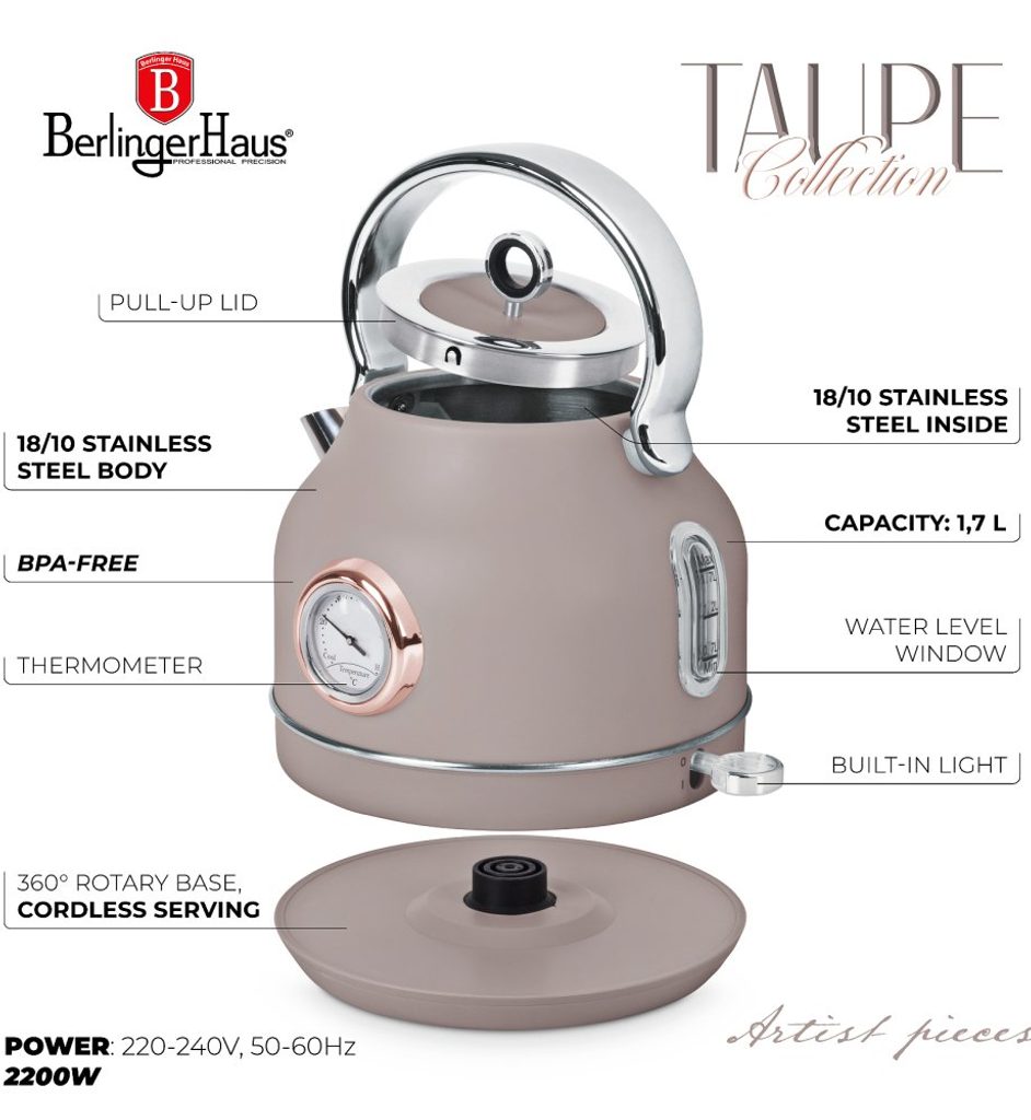 BERLINGERHAUS Rychlovarná konvice s teploměrem Taupe Collection BH-9514